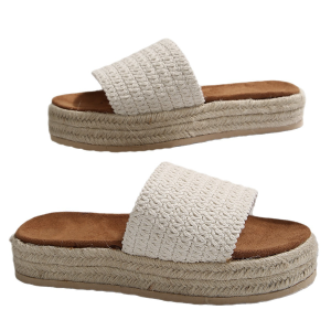 Women Open Toe Braided Jute Platform Sandals