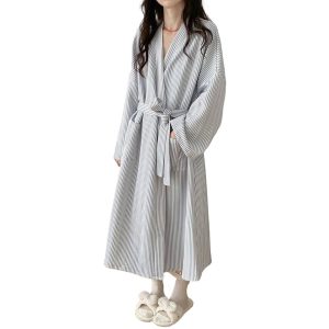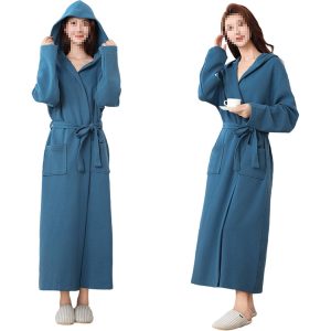 Women Hooded Cotton Bathrobe All-Season Long Robe