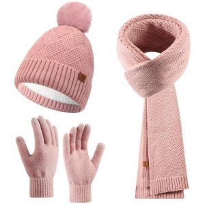 3 Pcs Winter Hat Scarf Gloves Knit Set