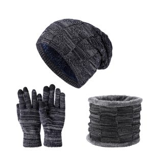Winter Beanie Hat Scarf and Touch Screen Gloves Set