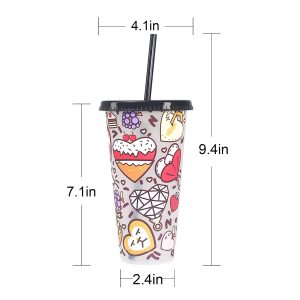 24oz Creative Color-Changing Tumbler with Straw