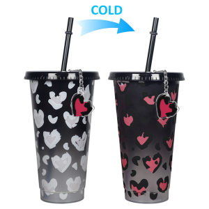 24oz Heart Shaped Color Changing Plastic Cup