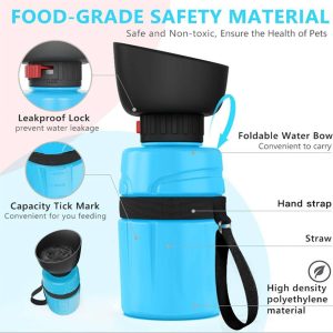 18oz Dog Travel Water Bottle – Leakproof Dispenser with Bowl