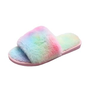 Soft Sole Anti-Slip Rainbow Plush Home Slippers