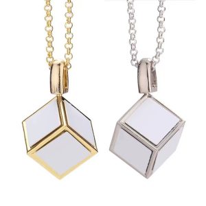Blank Metal Jewelry Dice Square Pendant Necklace