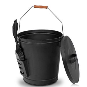 Durable Steel Fireplace Ash Bucket w/ Lid and Shovel