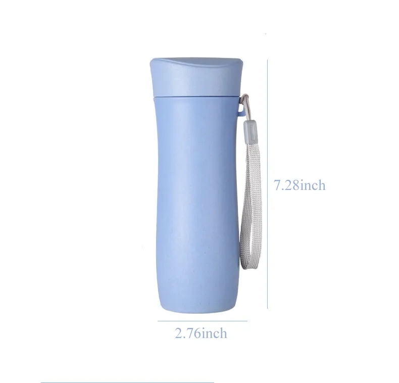Eco-friendly 13oz wheat straw water bottle with strap, lightweight, reusable, easy to clean, perfect for travel & daily use.