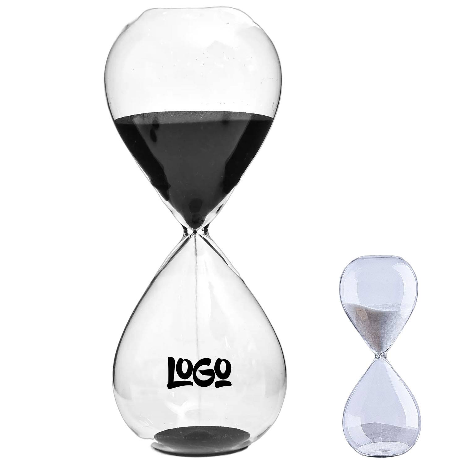 Glass 30-minute hourglass with smooth sand flow, sturdy frame, safe and calming for work, study, or meditation.