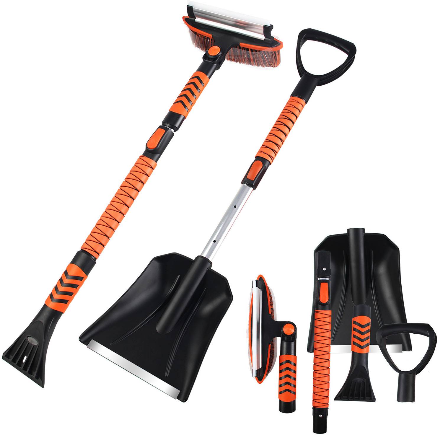 5-in-1 extendable snow brush and ice scraper kit with durable ABS, EVA foam handle, perfect for safe, easy vehicle snow removal.