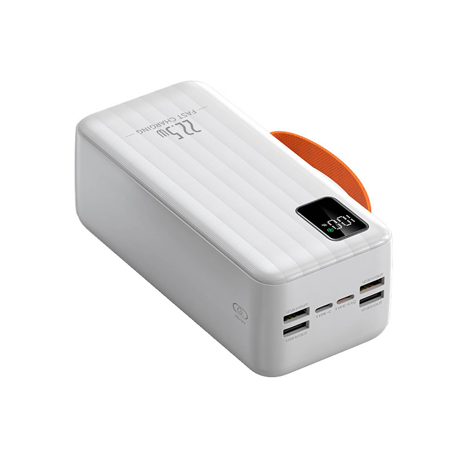 Stay powered up on the go with the 50,000mAh Portable Power Bank with Fast Charging Cable.The dimensions are 5.8 x 2.6 x 2.6 inches. Designed with a durable plastic material, this power bank offers a massive 50,000mAh capacity, ensuring you can charge multiple devices without worry. The fast charging cable provides quick power delivery for devices, saving you time. Featuring a convenient carrying handle, it’s easy to carry on trips, outdoor activities, or long journeys.