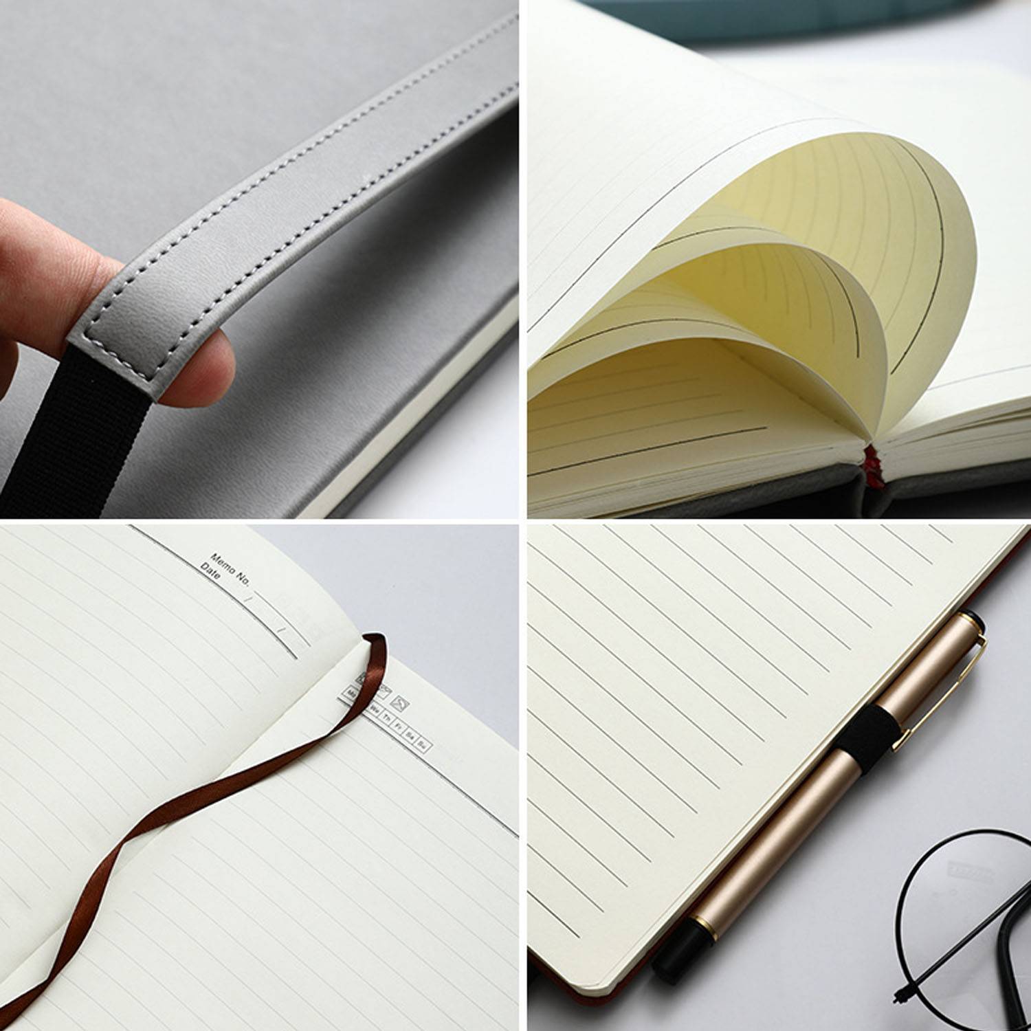 Elegant A5 PU leather notebook with strap closure, durable, secure, perfect for journaling, note-taking, or meetings.