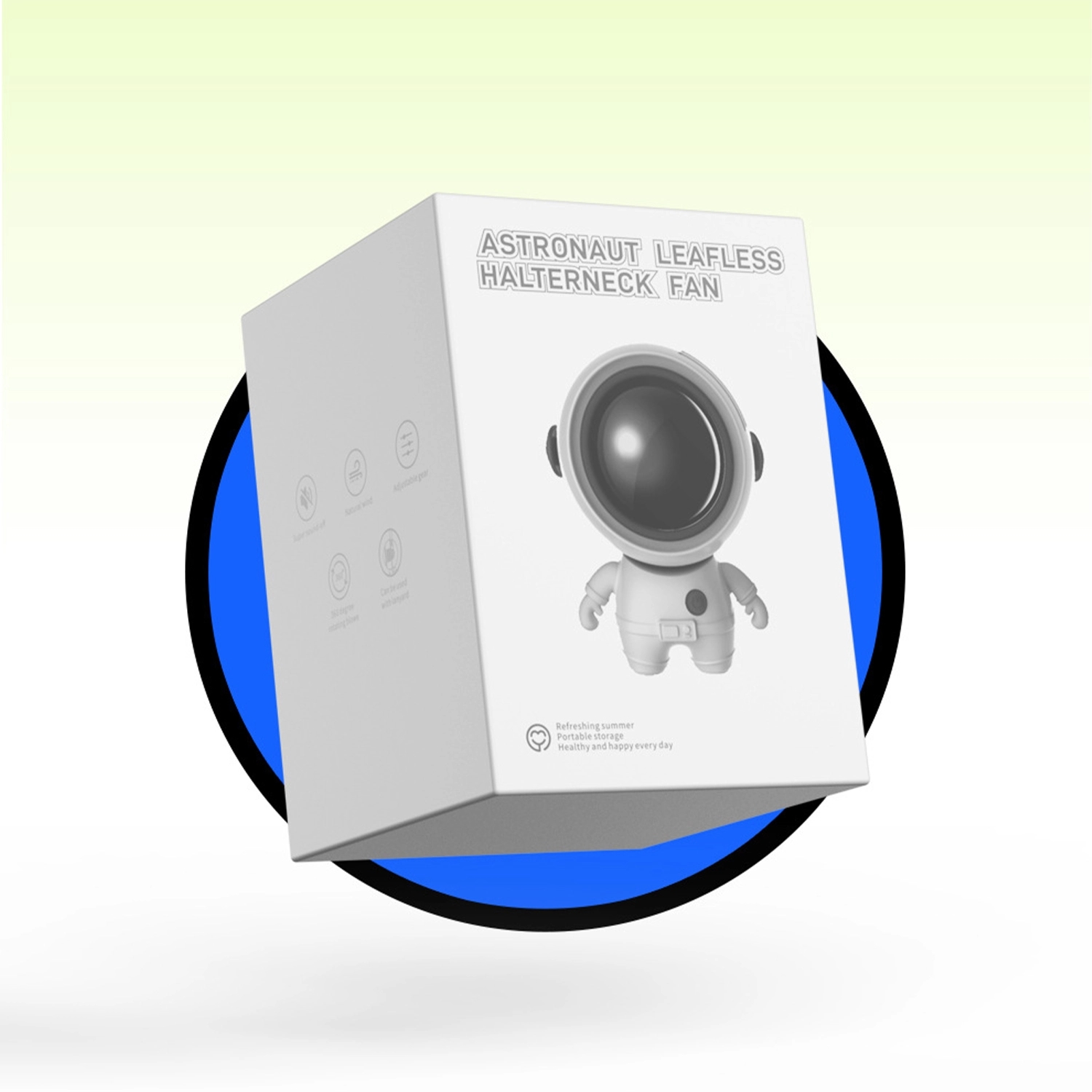 Experience cooling relief from outer space with this astronaut hanging neck fan! This product offers 360-degree airflow and a bladeless design. Equipped with a USB rechargeable battery, it can be charged via computer, car, phone, and more. Depending on the speed, it can run for 2 to 5 hours.