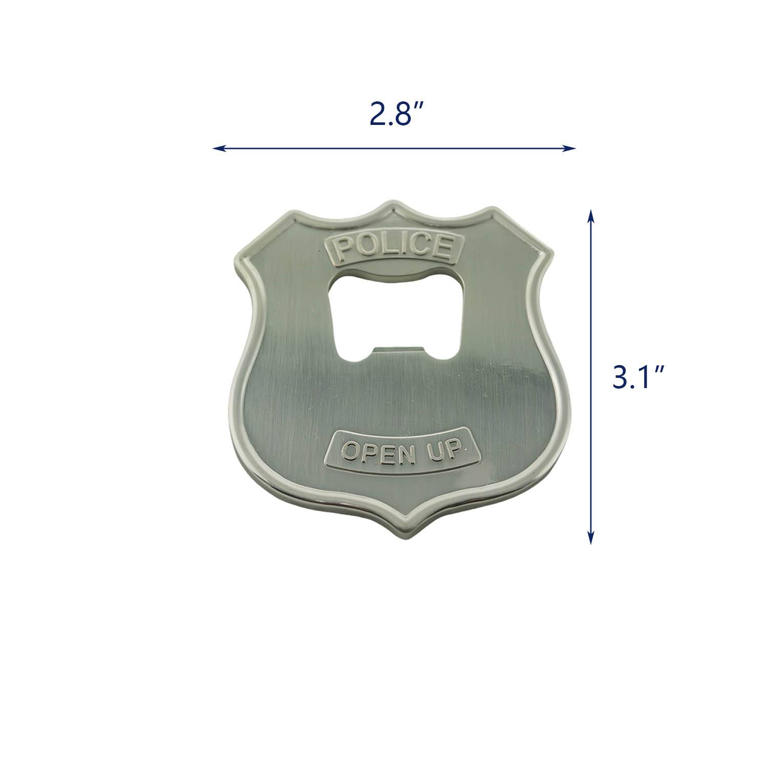 This Badge Bottle Opener is crafted from high-quality metal. Its design is inspired by a police badge, making it unique and eye-catching. Not only is it a practical bottle opener, but it also serves as an interesting conversation starter or display piece.