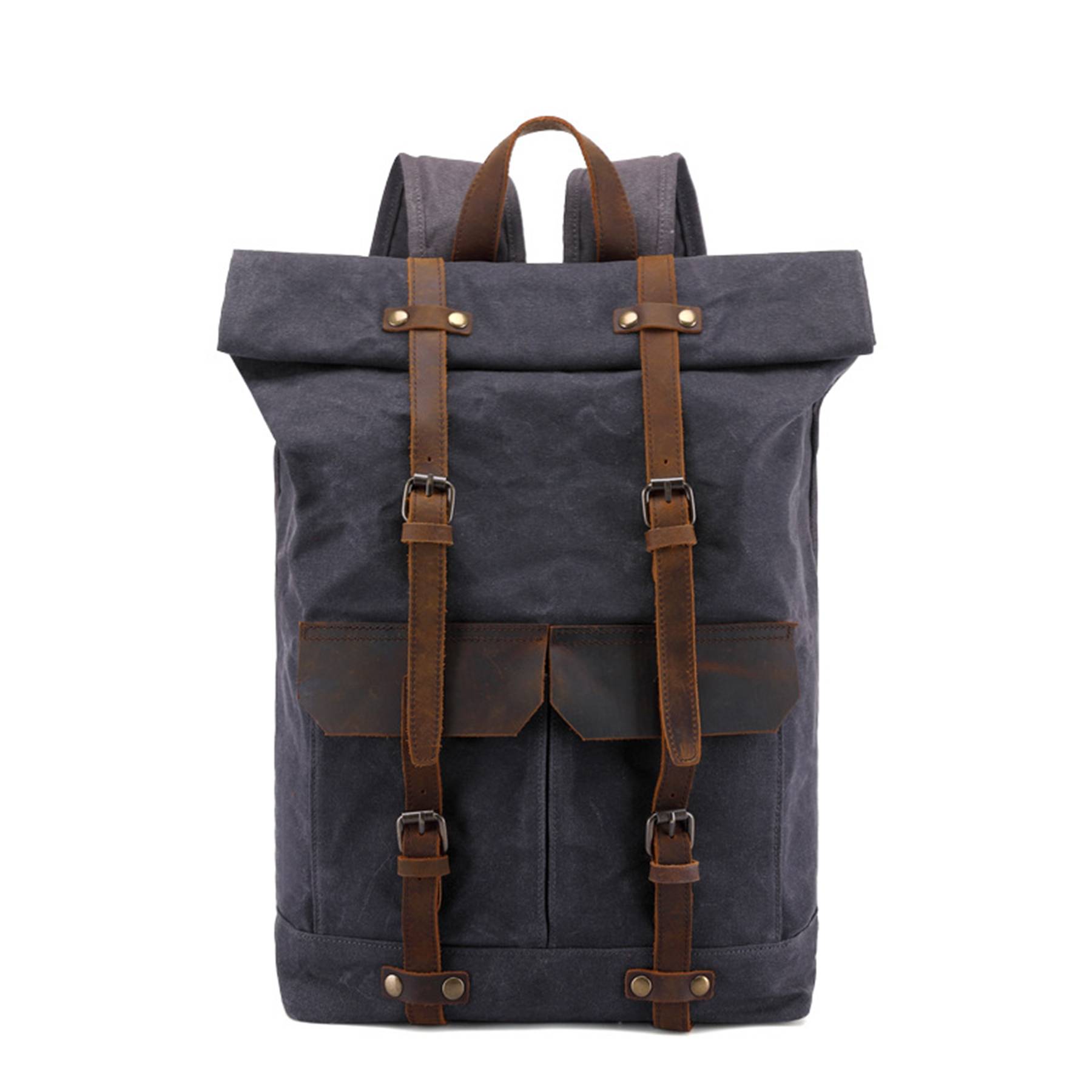 Premium water repellent waxed canvas,it can protect your stuffs inside against the sudden rain. Its wide shoulder strap design is dispersion the weight and have Comfort and durability ,this strap can easily adjust its length when needed. Carrying handle made of the same cowhide and fixed by high quality hardware, which makes the canvas backpack easy to use . Copper Rivets and Vintage Metal Hardware in all the right places.
