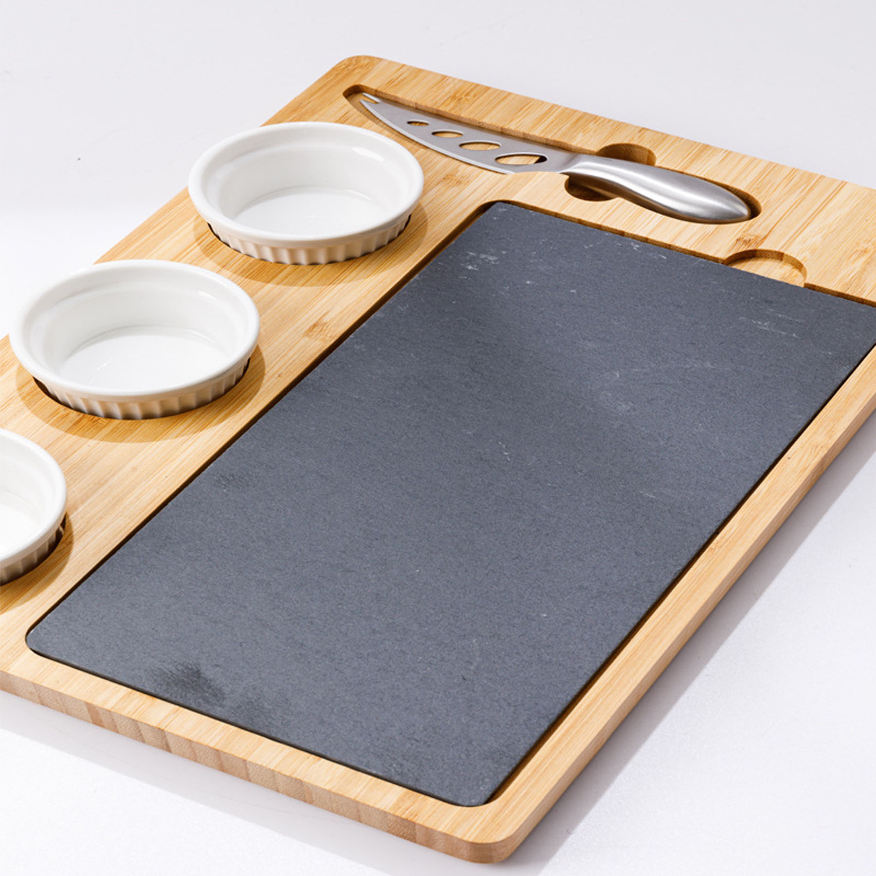 This Christmas gift for friend’s kitchen board is made of superior natural bamboo, which is totally food contact safe, non-toxic and odor-free.The tray equips smooth bamboo surface, which is not only no cracking to be more durable and sturdier, but also easy to clean and protect the knife edge. This unique birthday gift comes with complete cutlery set, blade knife, flat cheese knife, small spade and cheese fork, all fit for daily dietary need.