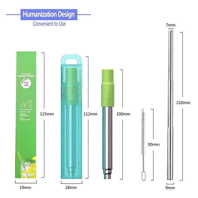 Collapsible stainless steel straw are reusable, sturdy and environmentally friendly than Plastic or Paper Straws for daily use. Save the world from plastics.”