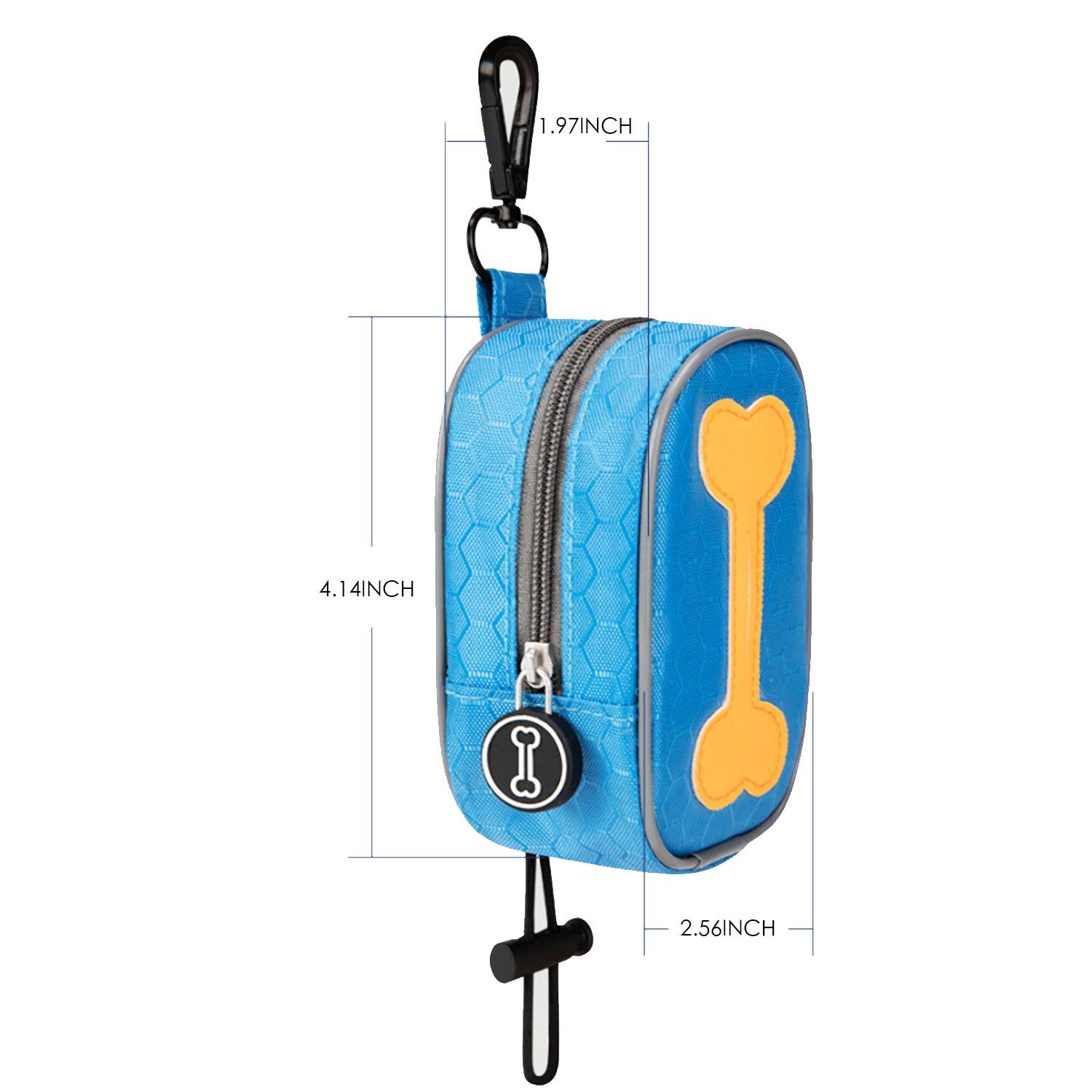 Pet poop trash bag dispenser is designed in the shape of a bone, with bright colors to attract pet’s attention; It comes with a matching color waste bag inside for easy use; The hook allows you to hang the bag dispenser on a belt or leash for outgoing small and light, easy to use and carry;