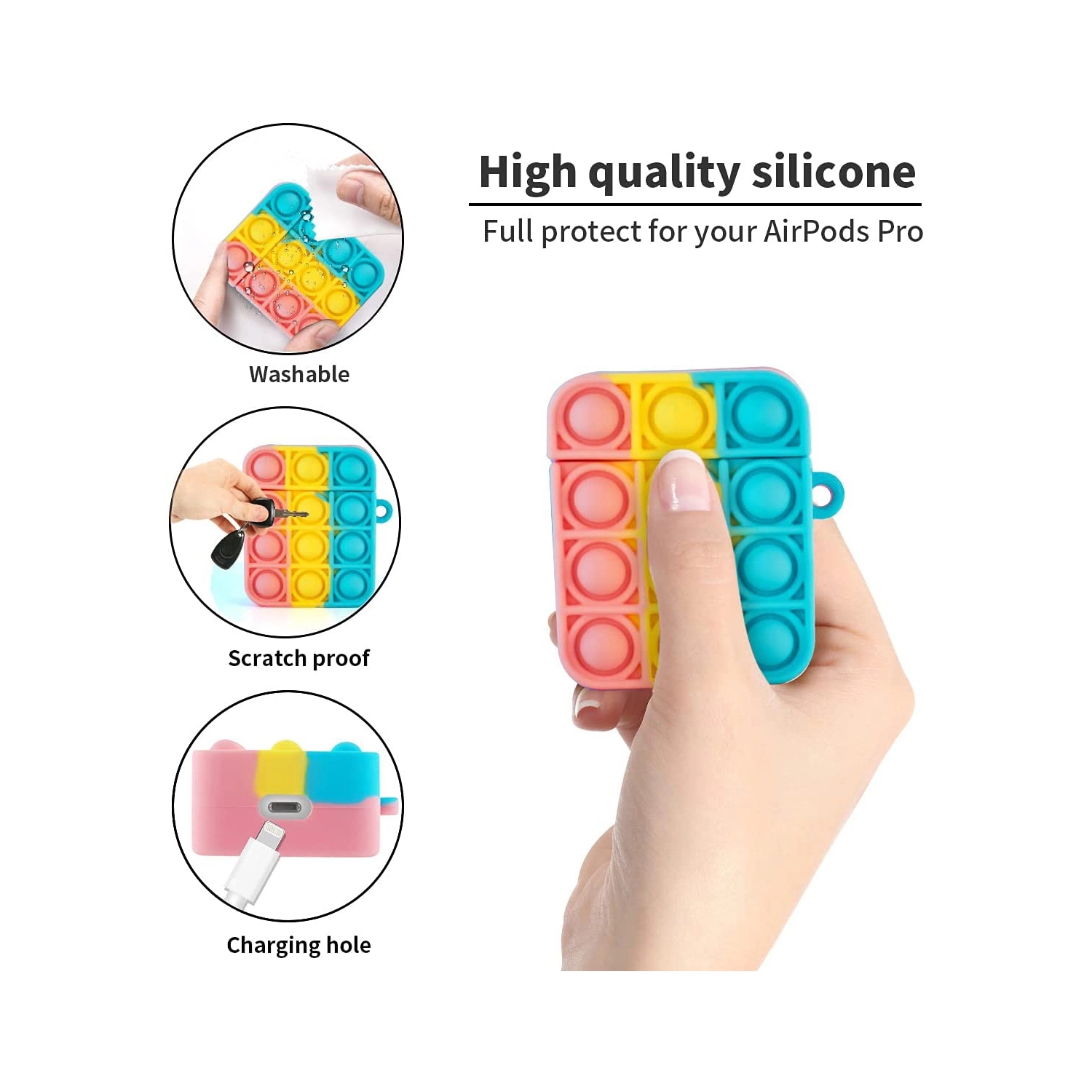Made of high-quality silicone,which is very durable. Small size, soft and comfortable. Dirt-resistant, anti-fingerprint, and washable. With this case, your earphones could survive from any fall. It is not only a very interesting earphone case, but also a practical anti-anxiety tool. No matter where you are, you can play it when you feel anxious or bored. This phone shell has good shock absorption, anti-scratch and anti-slip properties, which make your earphone can be protected from scratches. 1.97″L x 1.77″W x 1.1″H