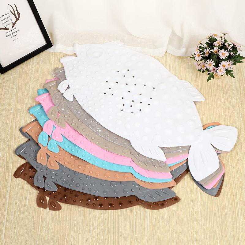 The fish-shaped doormat is both functional and decorative. Made of durable plastic, it’s easy to clean.