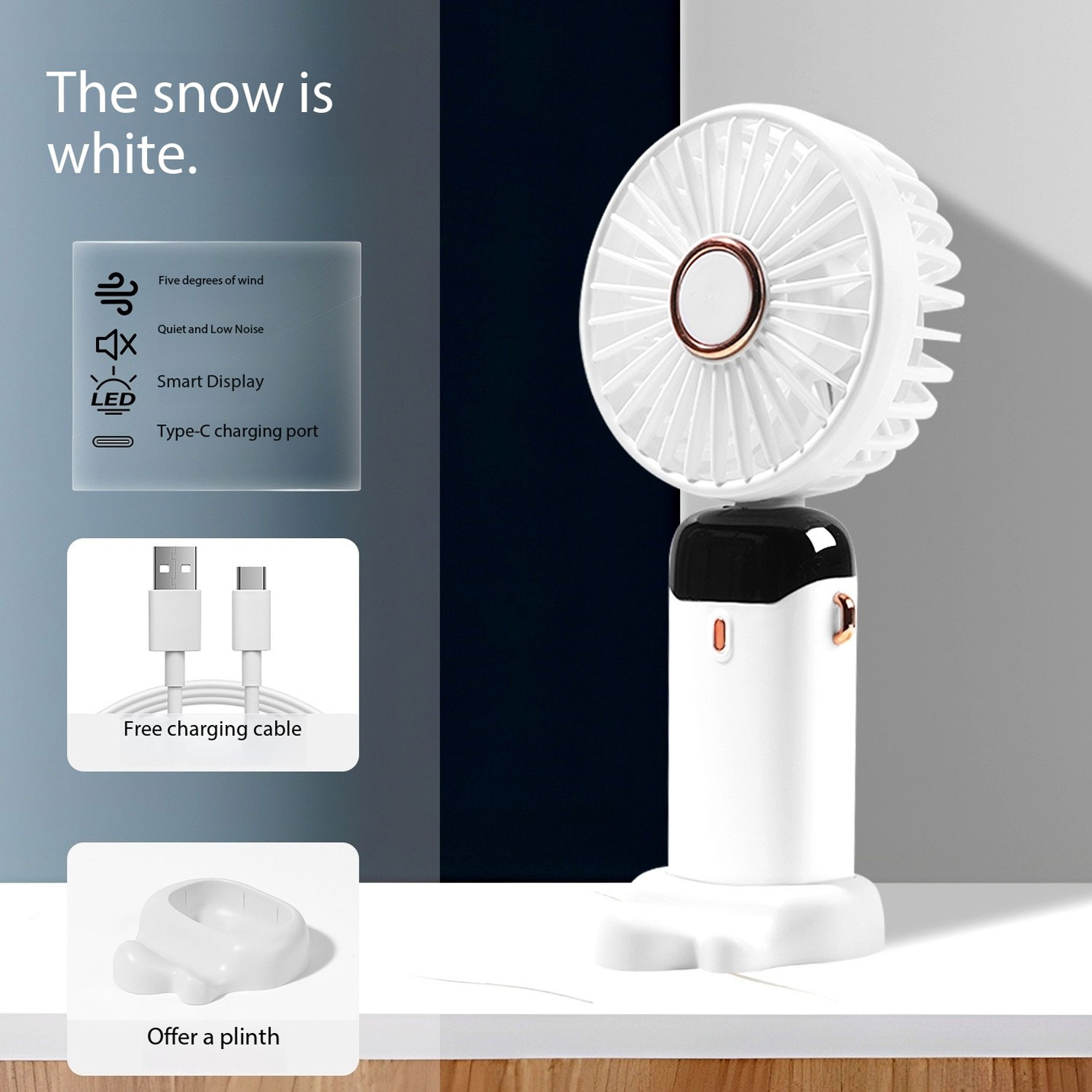 Lightweight handheld fan with LED display and 5 speeds, perfect for portable cooling at home or on the go.