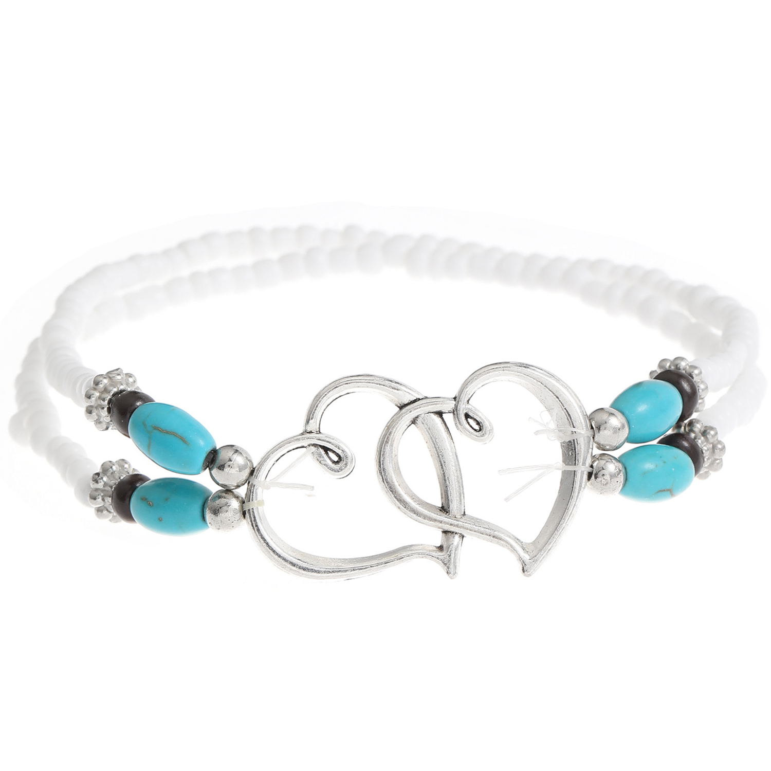 Heart Shape Double Layer Beaded Ankle Bracelets