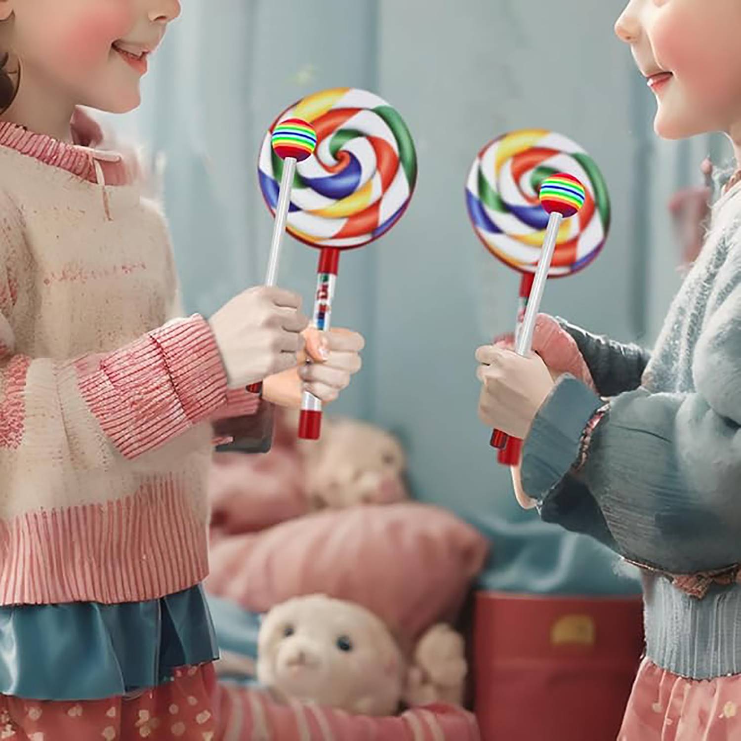 Colorful plastic lollipop hand drum helps kids learn rhythm, develop motor skills, and enjoy safe, fun music play anytime.