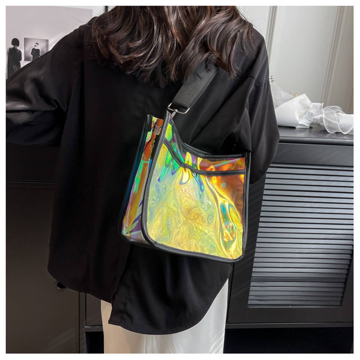 This is a dazzling laser bag made of PVC material, which is a must-have item for fashionable women.