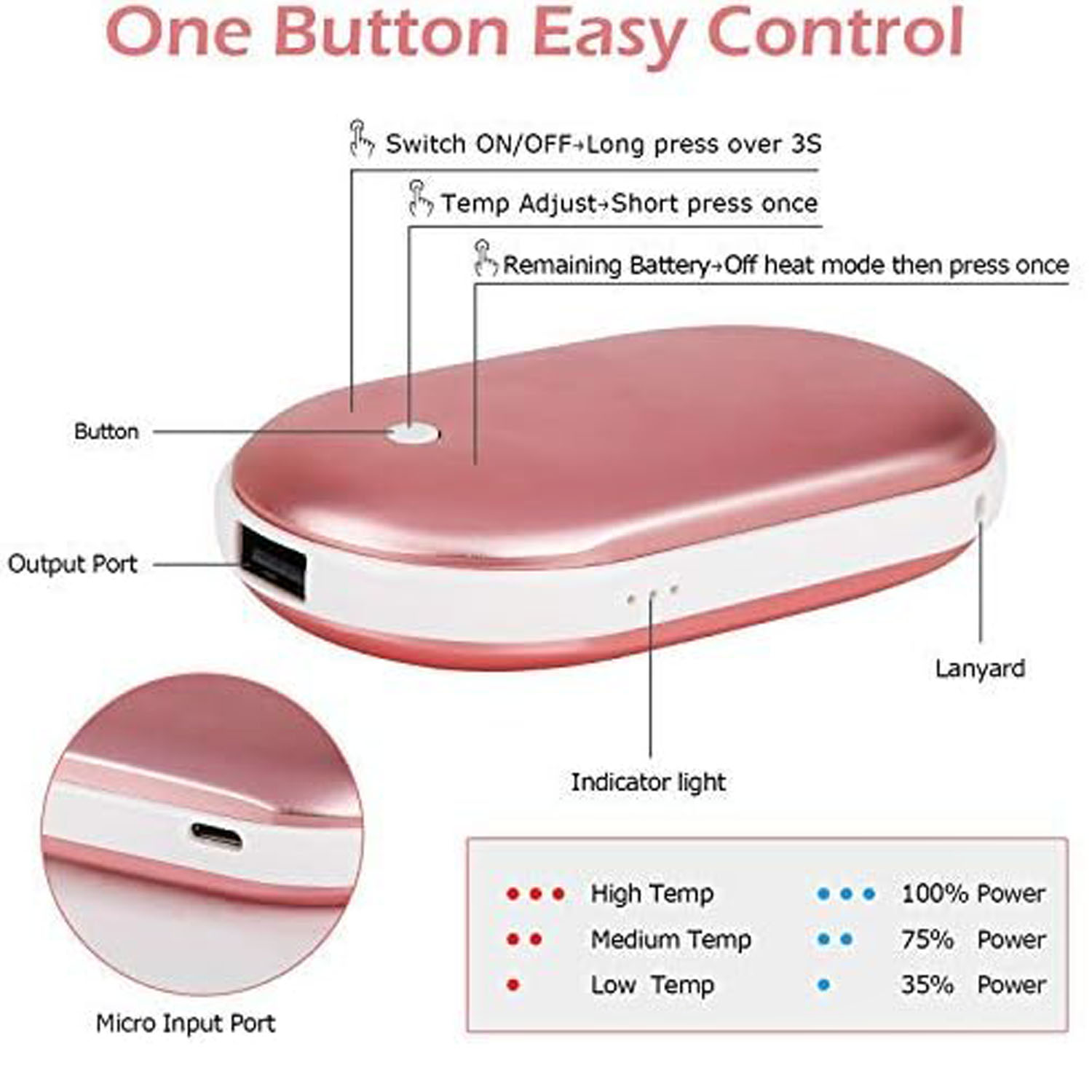 Hand warmer and pocket power bank supply are two in one, compact and exquisite, it can be held in one hand, and can be carried in a travel bag or pocket! Very suitable forElectric hand warmer is made of aluminum alloy and can be heated in seconds. Just long press the switch to turn on the heating state, and you can enjoy the warmth in the cold