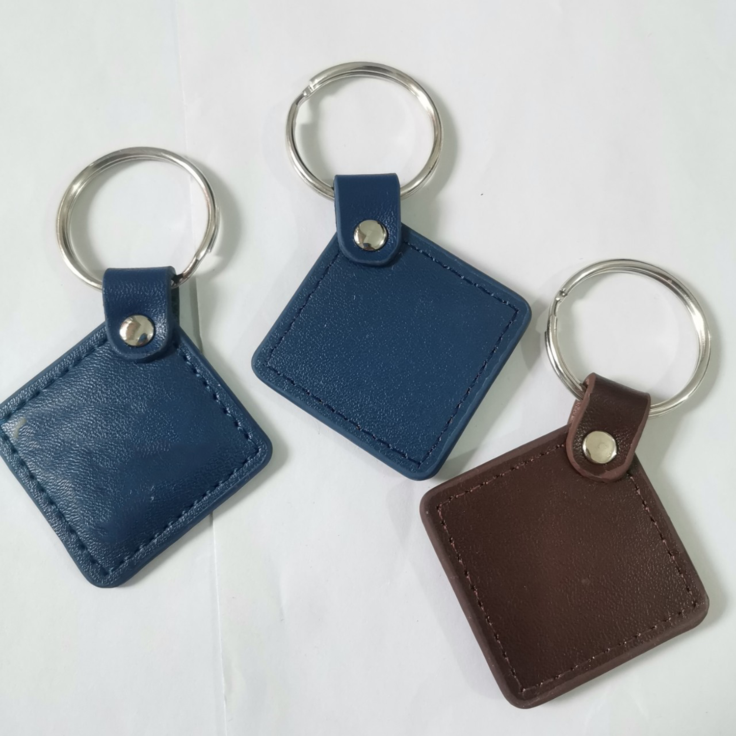 Introducing our classic leather keychain, a must-have accessory for your daily routine. Crafted from premium leather, this keychain exudes elegance and durability, ensuring it will last for years. The keychain features a square-shaped leather body, accented by fine stitching along the edges. This stitching detail adds a touch of sophistication while also enhancing the overall strength and durability. At the center of the keychain, you’ll find a sturdy metal ring.