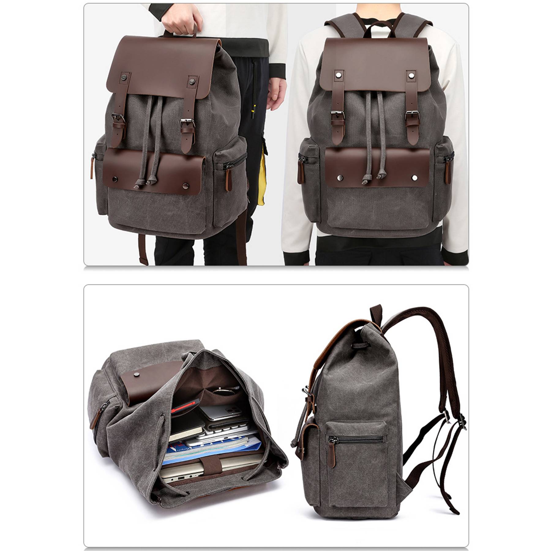 Vintage backpack, broad soft adjustable shoulder straps easy to carrying with perfect fit, premium materials protect belongings from outside damage , beautiful pu leather belt and corner decor suitable for daily use.