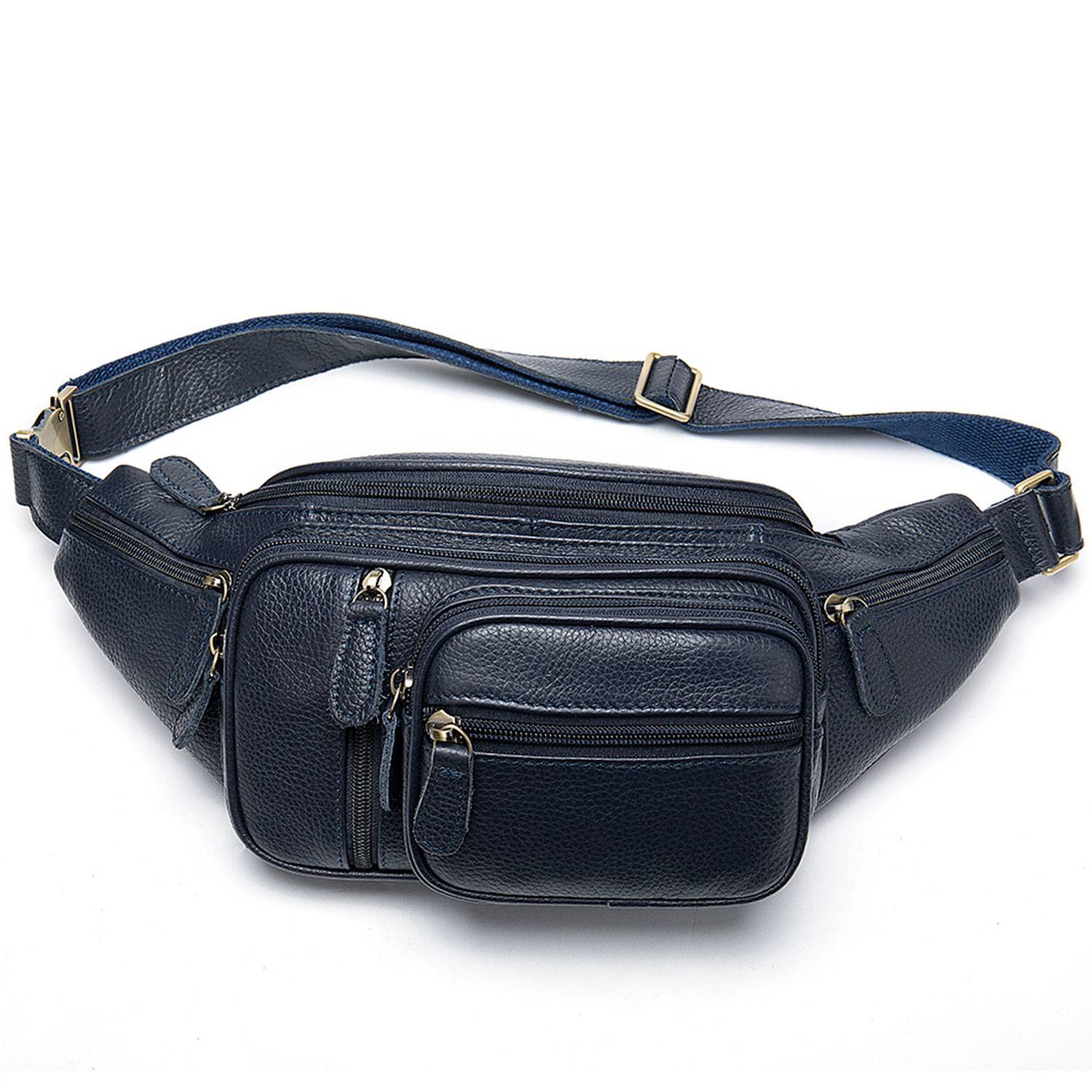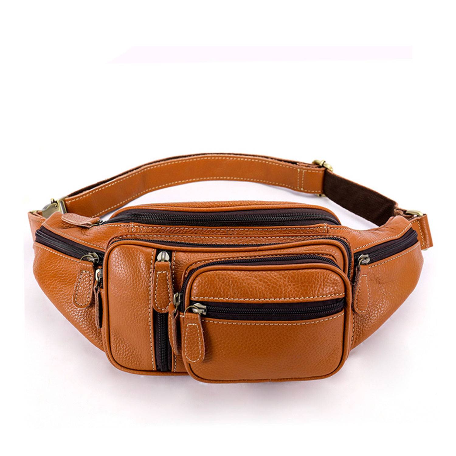 Stylish Genuine Leather fanny pack with multiple pockets, durable design, perfect for travel or casual outings, secure .