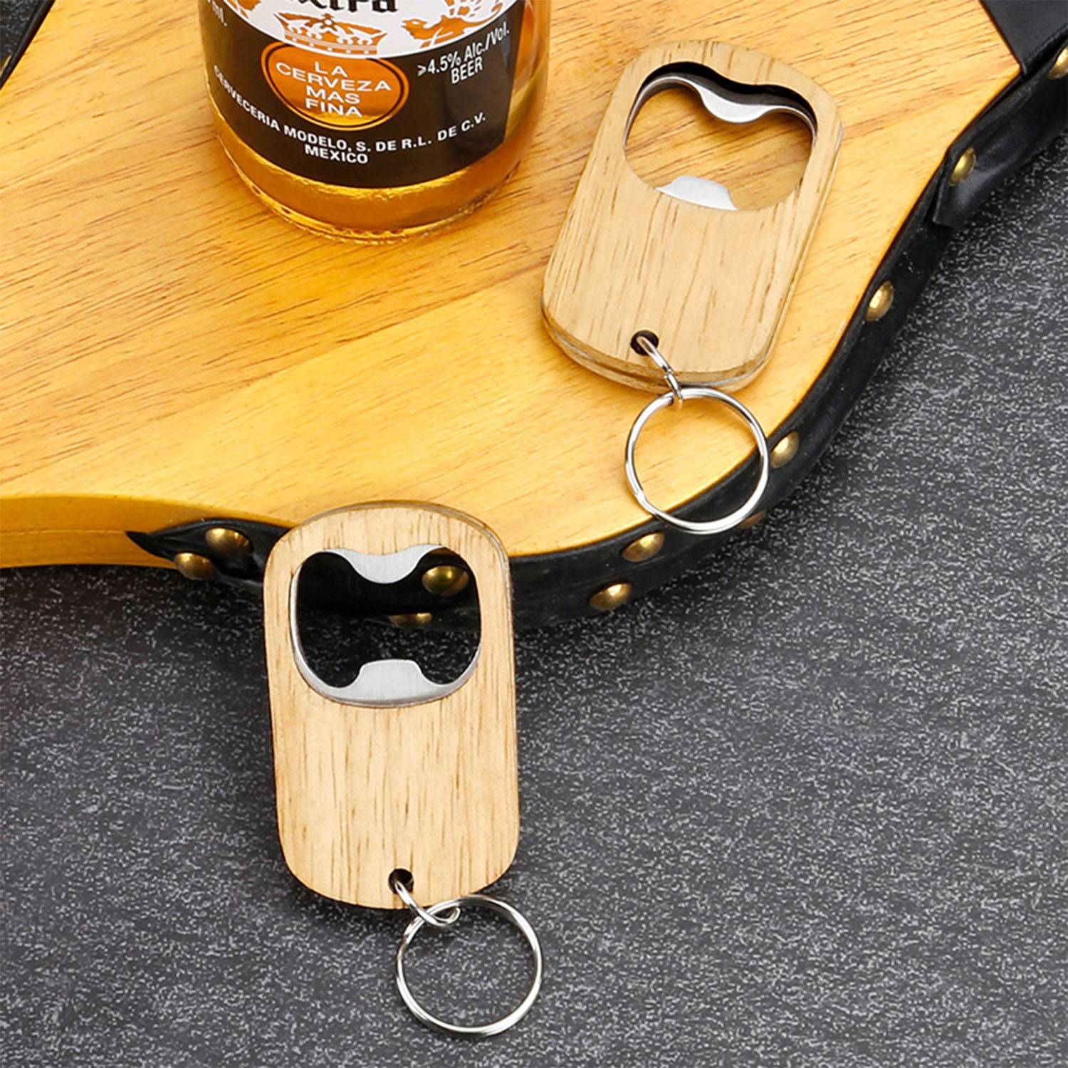 This mini bamboo bottle opener combines eco-friendly, antibacterial bamboo with a stylish striped wood grain for durability and hygiene. Equipped with a stainless steel insert, it easily opens tight caps while ensuring safety and long-lasting use. The built-in hanging hole adds convenience for storage or display. Lightweight and portable, it’s perfect for bars, clubs, picnics, and outdoor gatherings, offering a practical and elegant solution for everyday beverage enjoyment.