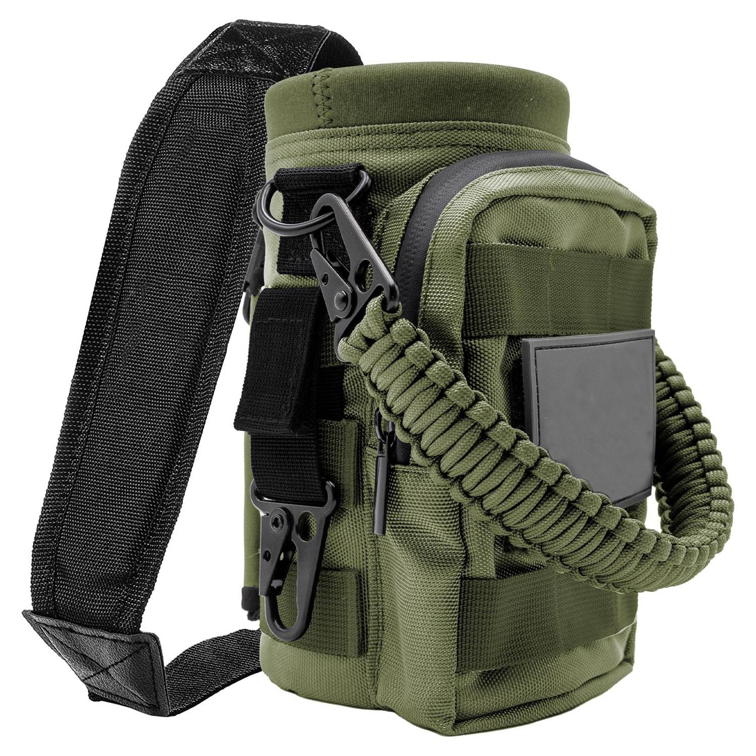 Crafted from durable 1200D polyester and insulated neoprene, this tactical water bottle bag protects against scratches and dents. It includes a detachable, adjustable shoulder strap for hands-free carrying and maximum comfort. Ideal for cycling, fishing, commuting, hiking, climbing, and other outdoor adventures, it offers secure attachment, versatile storage, and long-lasting performance in rugged conditions.