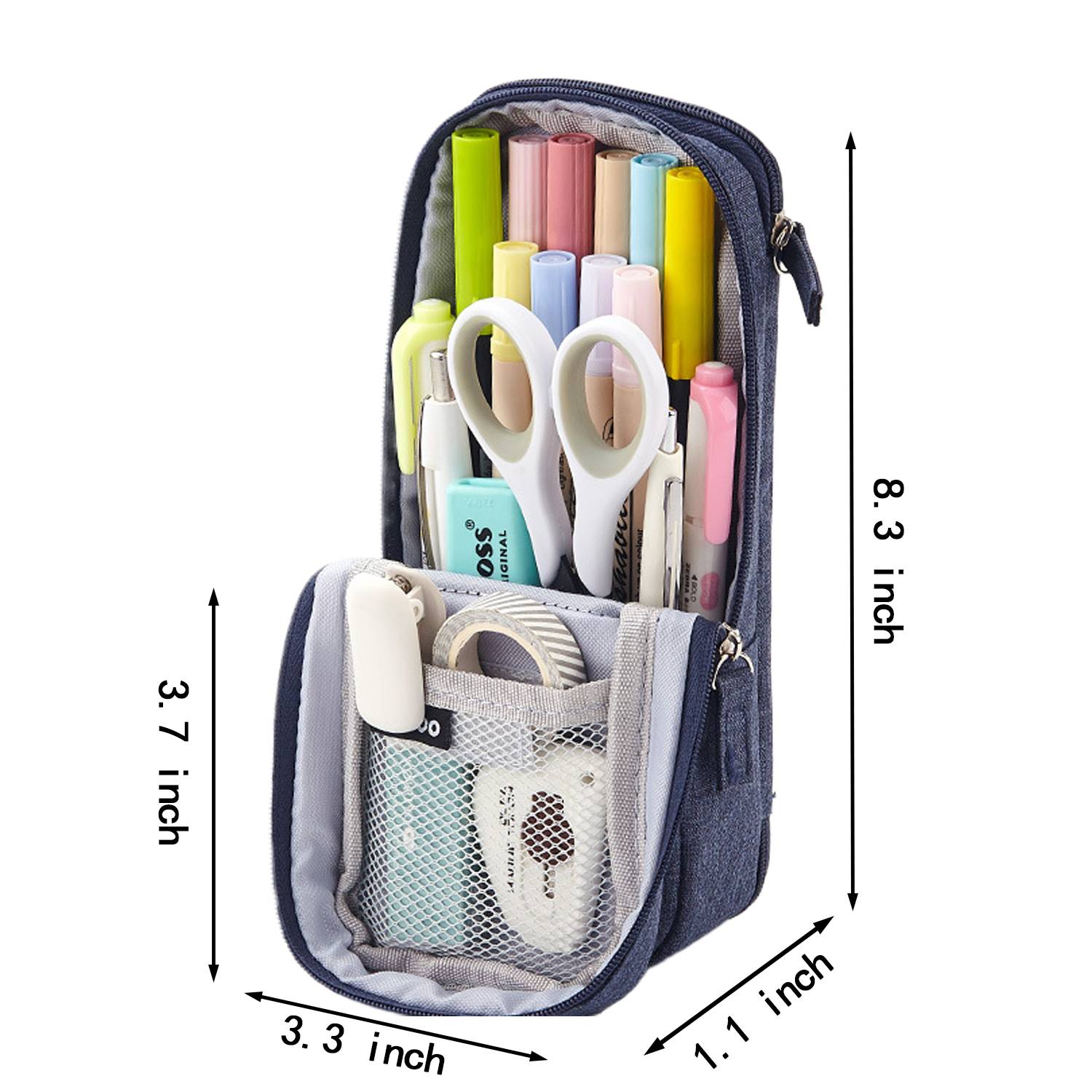 Polyester fiber material, sturdy and durable, can be used for a long time, has a fashionable and luxurious appearance, comfortable touch, sturdy, and protects stored items. The pencil case can be used vertically and horizontally. After opening the zipper, it can be folded outward and used as a pen holder. It is easy to remove and does not take up space, and can be widely used in the workspace to improve work efficiency. Can be used as a birthday gift, admission gift,and Christmas gift.