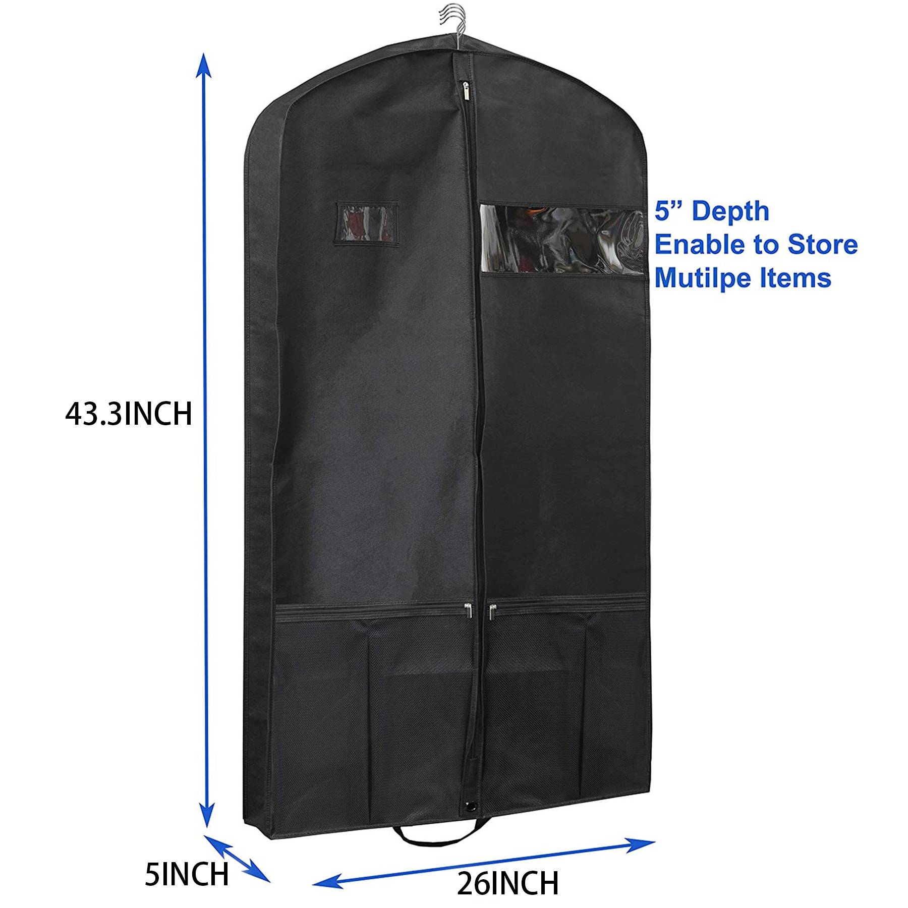 Great for suits, tuxedos, dresses, winter long coats, and even can put your shoes in it. Enable you to put multiple items in one bag. Contents not included.