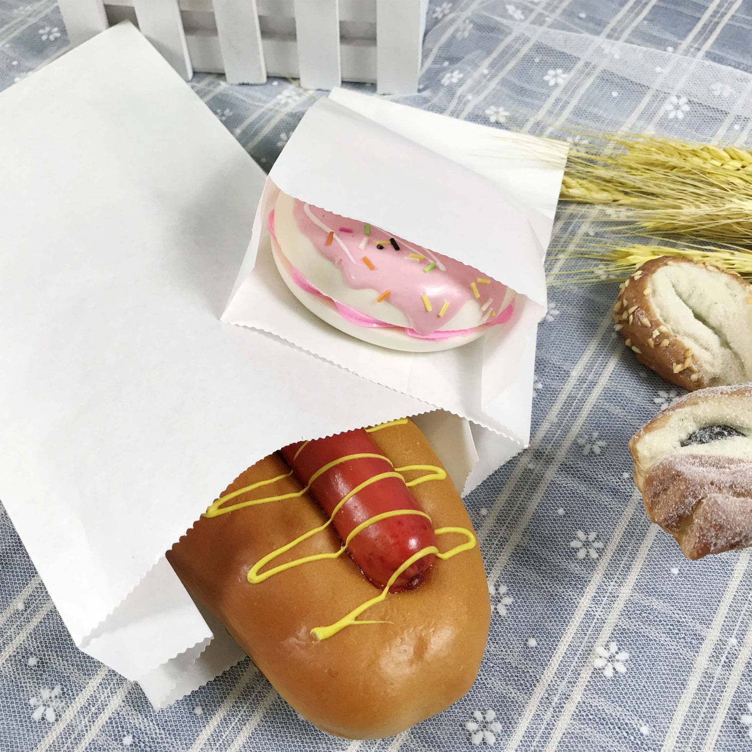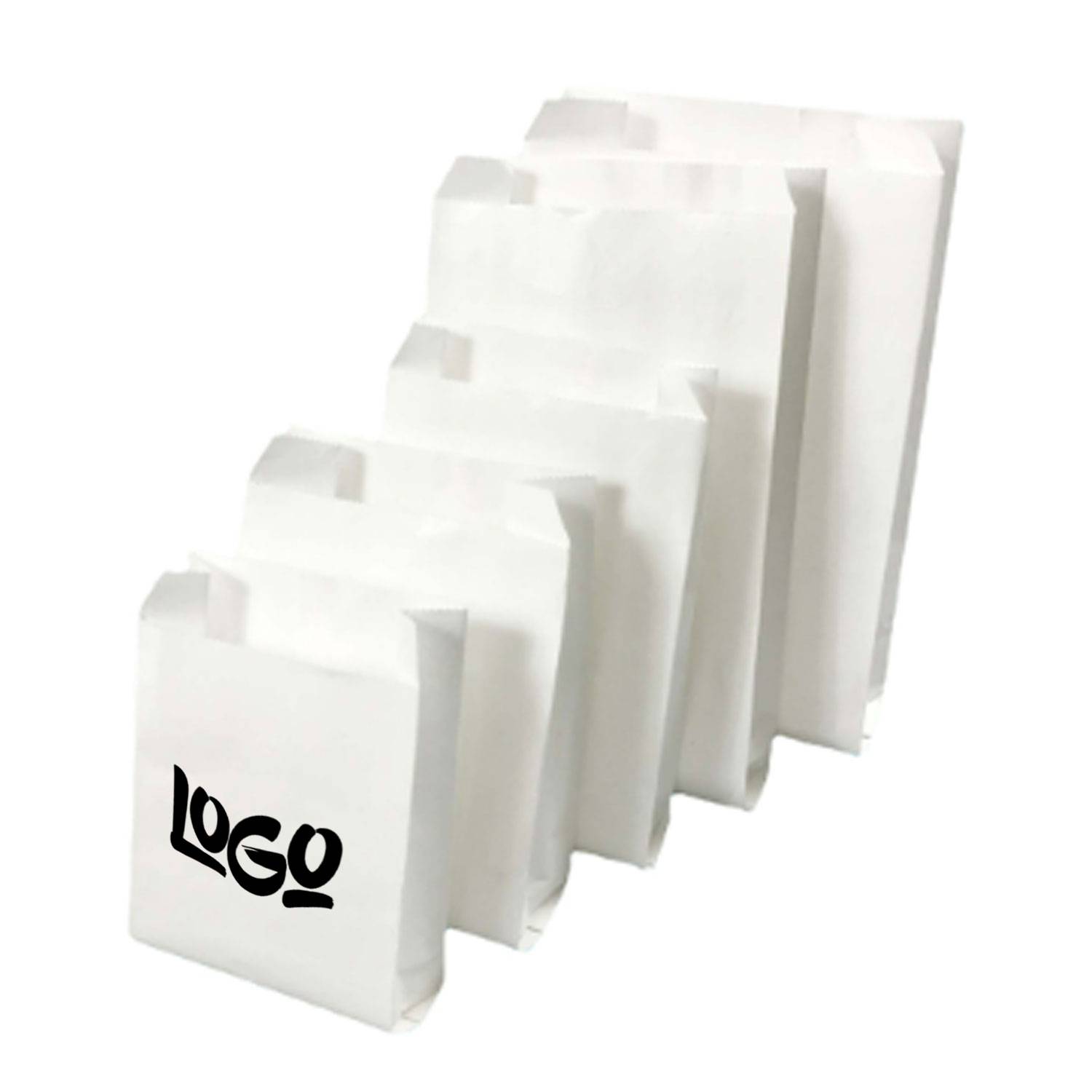 White food paper bags, modern design, oil-resistant glassine wax paper, perfect for snacks and bakery items!