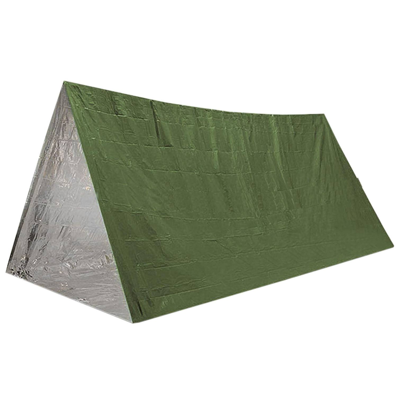 Waterproof PE emergency tent, lightweight, heat-retaining, tear-resistant, ideal for camping, hiking, or survival use.