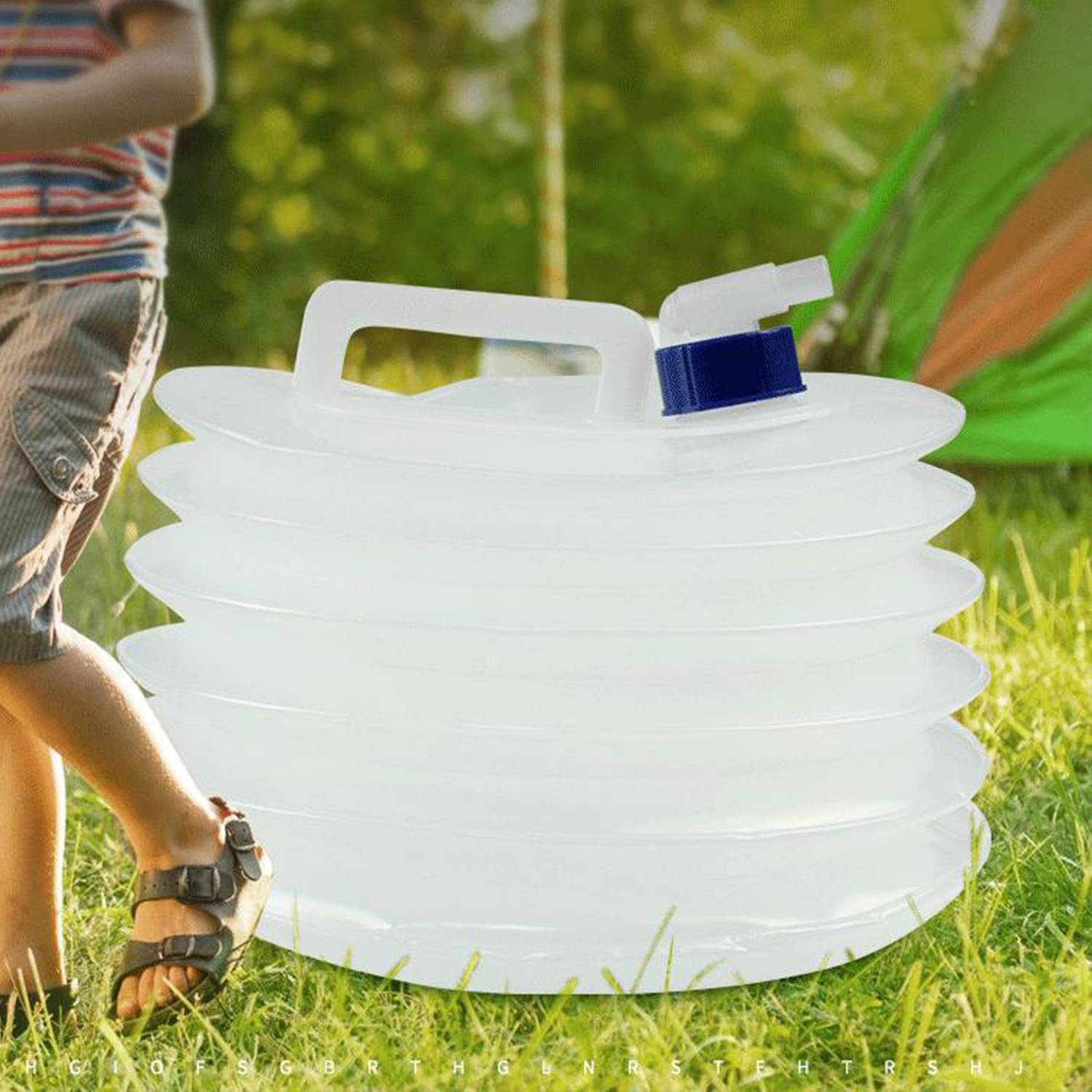 Portable, odor-free water container made of PE/PP. Compressible, lightweight, and sturdy for camping, picnics, and emergencies.