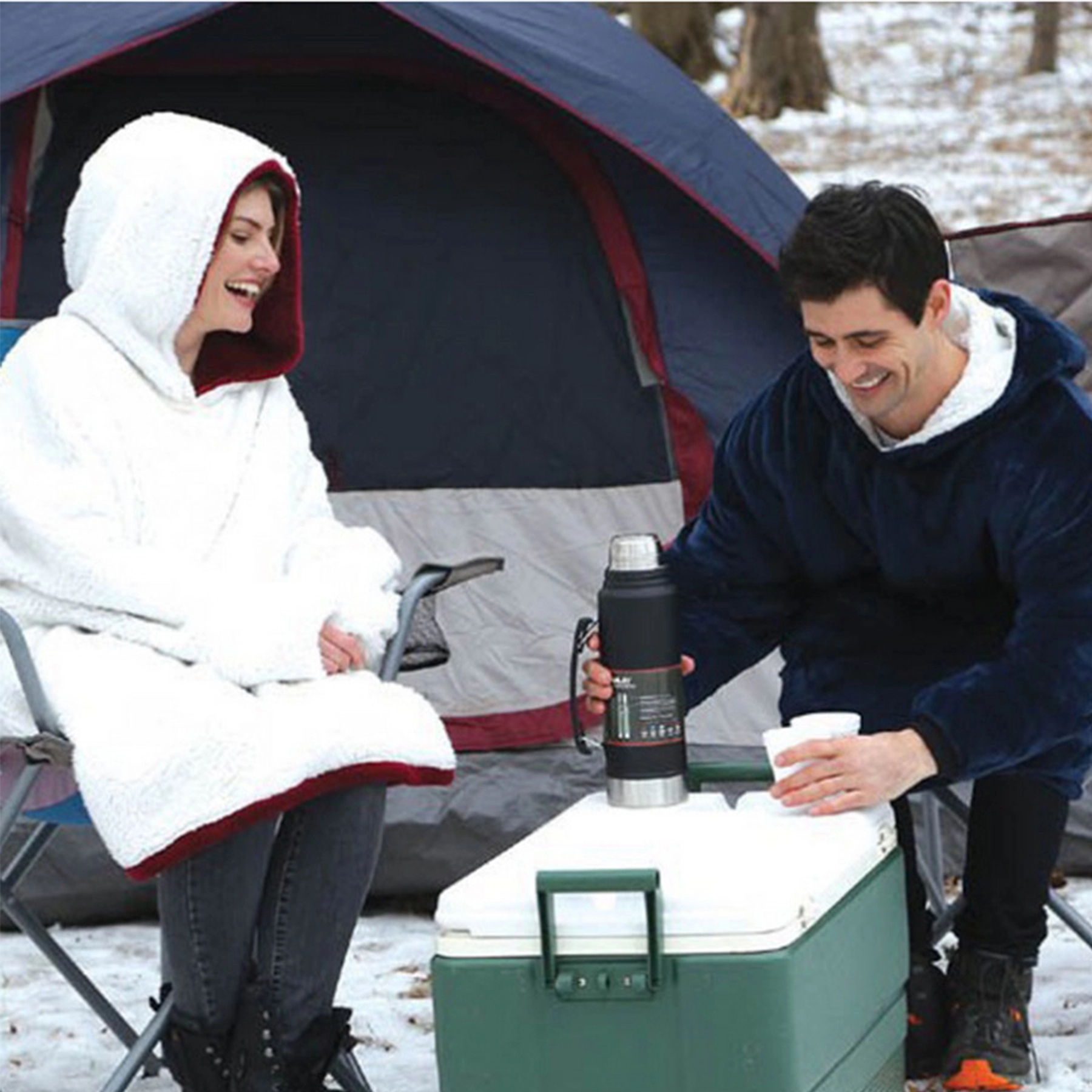 This wearable blanket keeps you warm & cozy while you lounge at home, watch TV, play video games, attend a sporting event or concert. Pull your legs into the plush fluffy sherpa to cover yourself completely on the couch, roll the sleeves up to make yourself a snack, & move around freely while taking your warmth wherever you go. The large, oversized comfortable design is a perfect fit for most all shapes & sizes. Bring it to the next outdoor barbeque, camping trip, beach, drive in or sleepover. The huge hood & pocket keeps your head & hands toasty warm. Keep what you need in arms reach in the pocket. Please noted: The price within 500 pieces is for shipping by express, over 500 pieces is for shipping by ocean. Material: sherpa-lined interior and a microfiber exterior.
