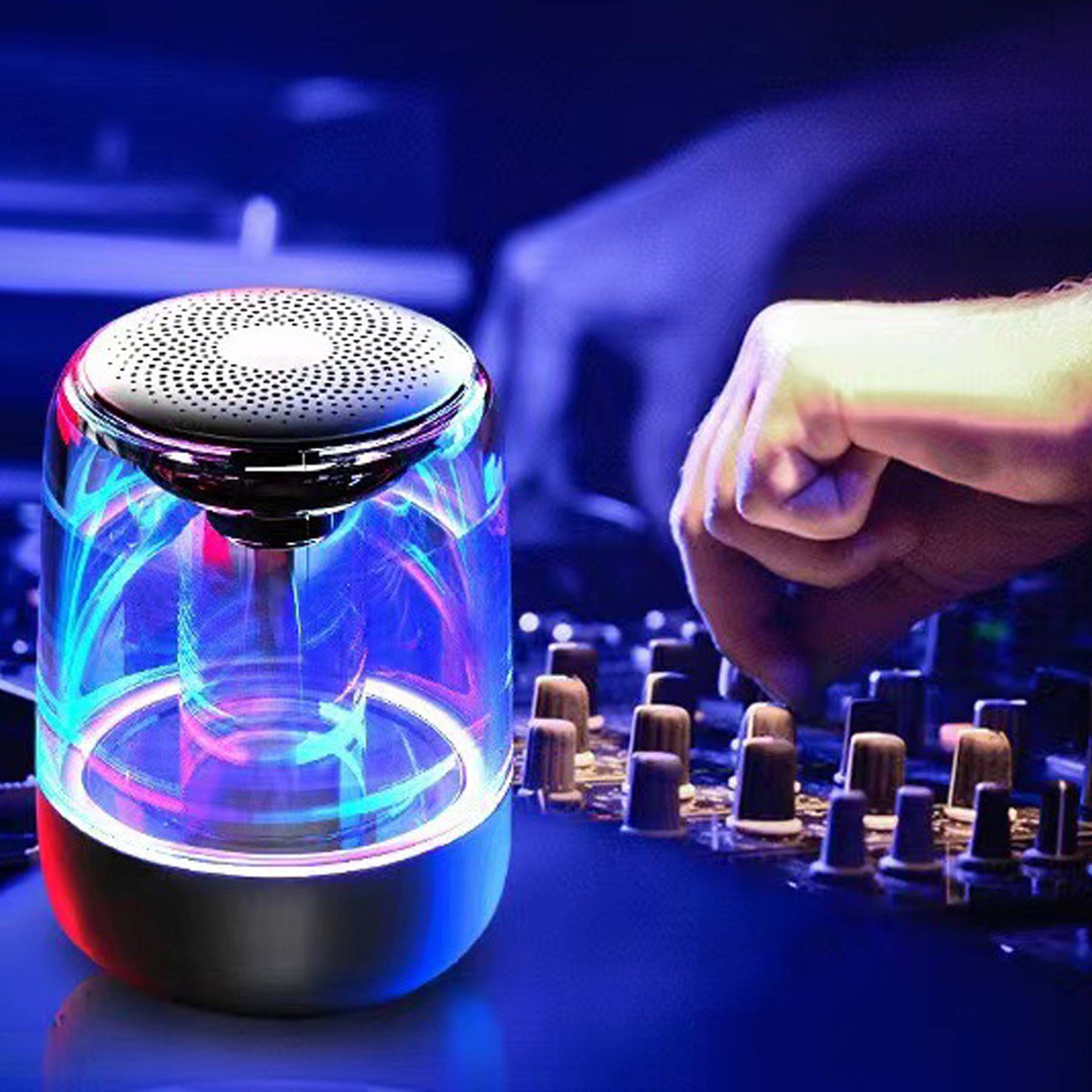 Portable Crystal Glass Wireless Speaker With Colorful Light