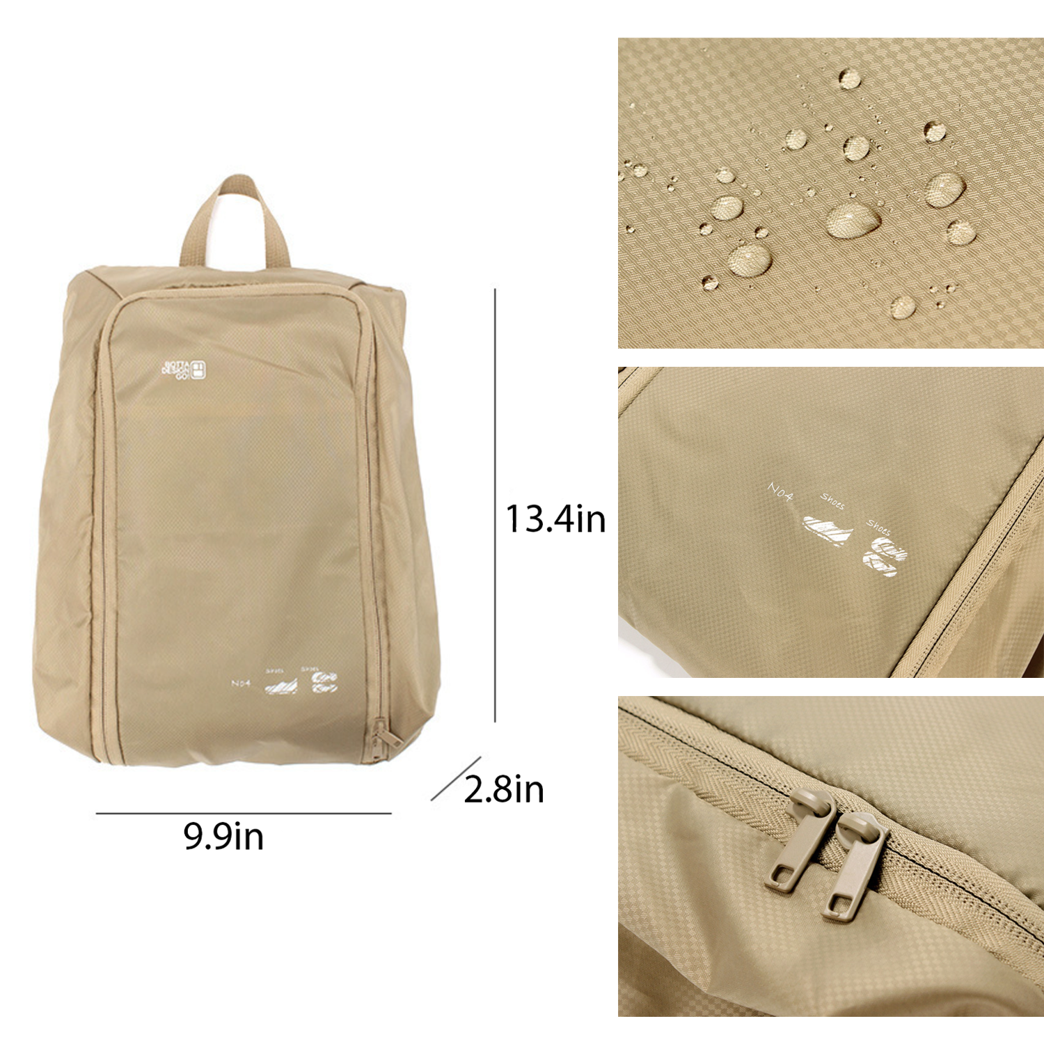 Portable, waterproof shoe bag for outdoor use. Folds easily, protects shoes, and fits travel needs.