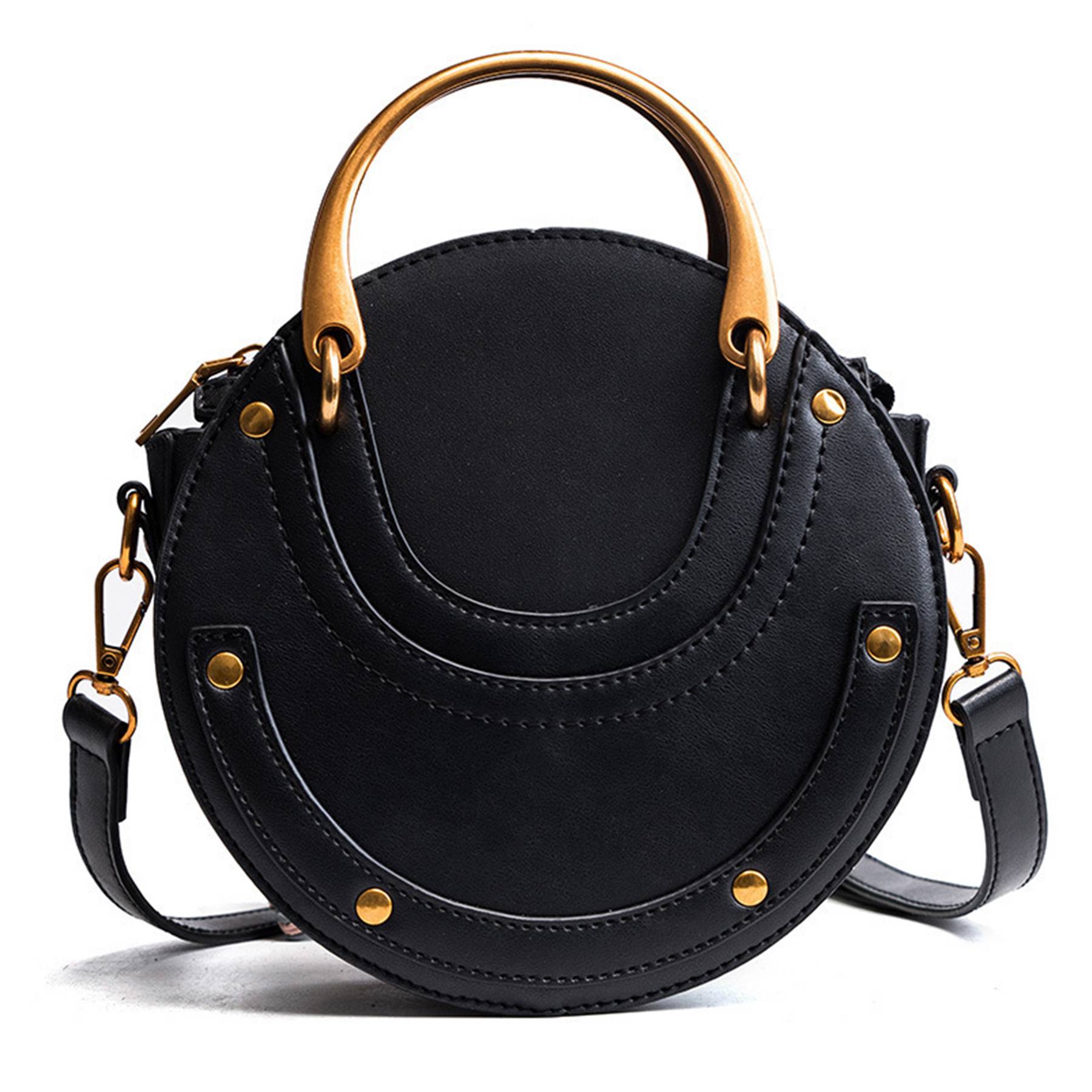 Top zipper closure, high-quality hardware in golden.Small round crossbody bags for women which can put your cell phone, wallet, keys, perfume, coins and some small cosmetics. It is well-constructed with strong stitching and hardware that is resistant to wear and tear. It lasts a long time and can handle daily use. It can be used as a handbag, crossbody bag and a shoulder bag, a great choice who value versatility and convenience.