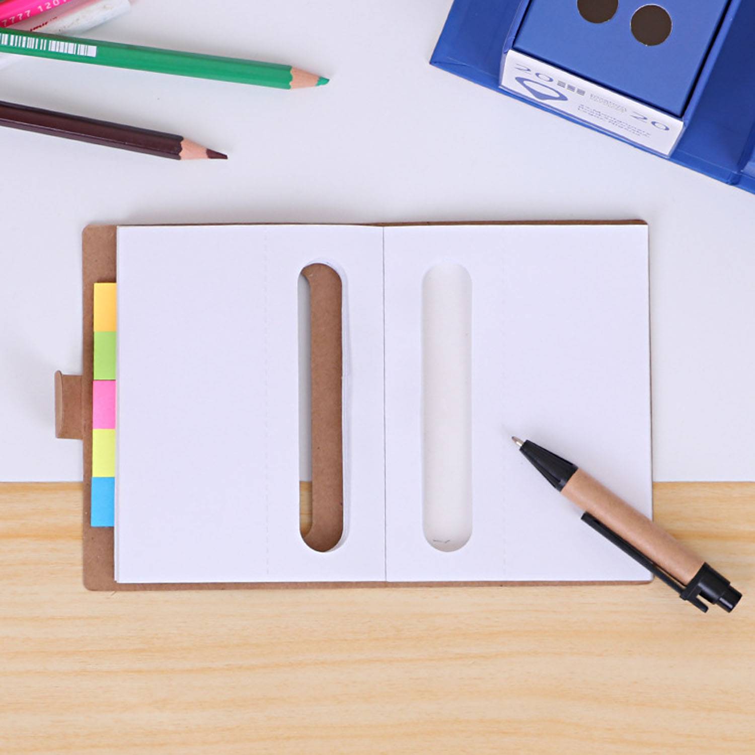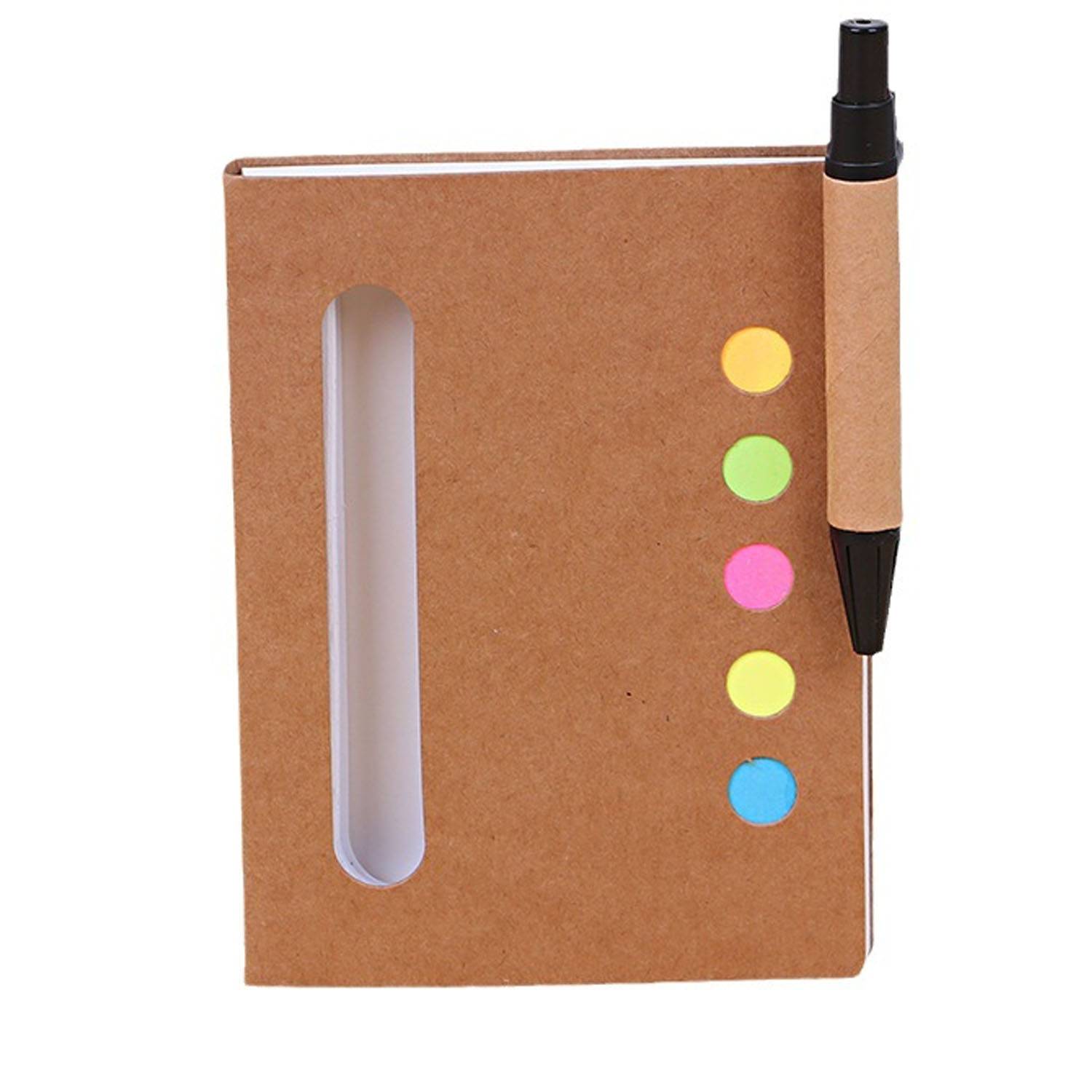 Brown paper notepad with 70 sheets, pen, and 5-color sticky notes; durable, eco-friendly, ideal for office, school, or home.
