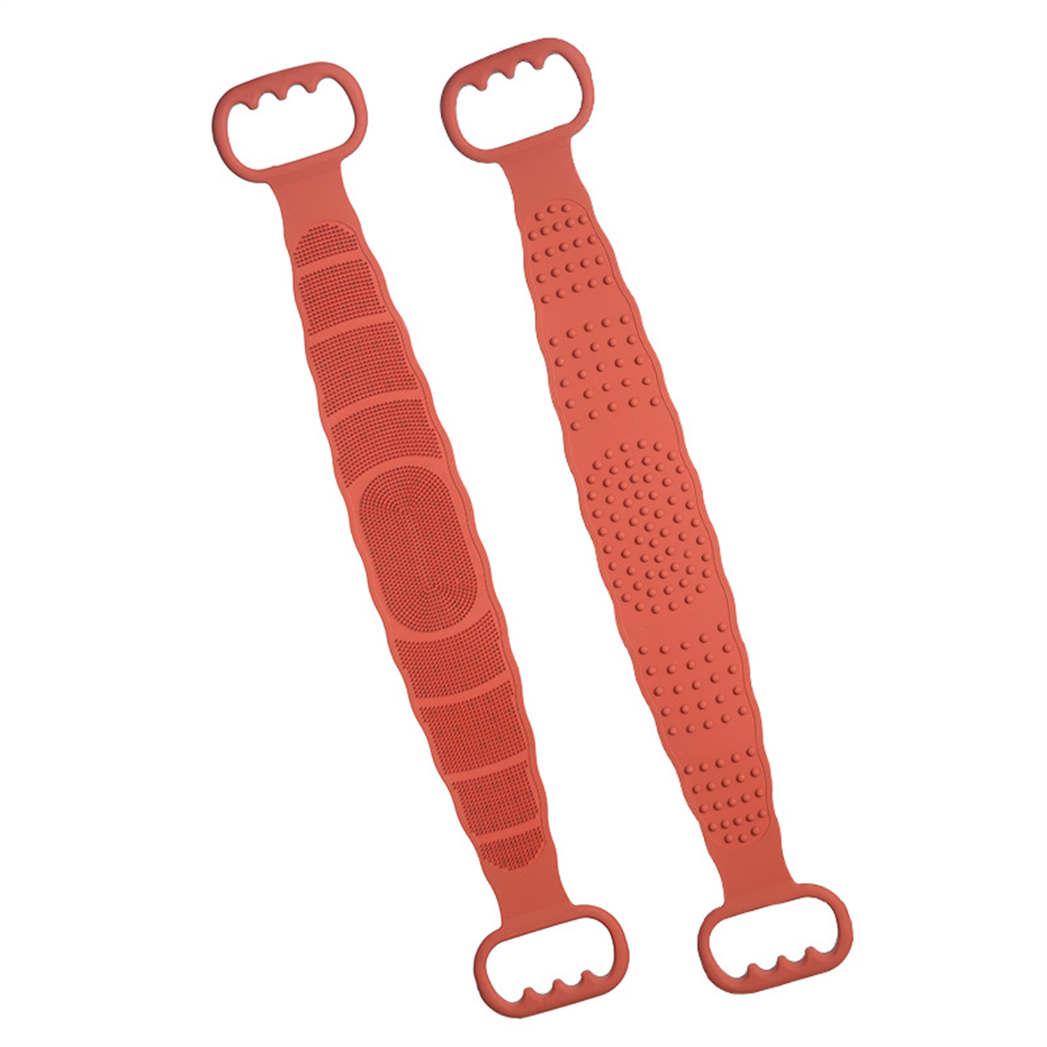 Made of food grade silicone, collapsible and durable. There are two sides, one is good exfoliating texture without being too rough while the other side is soft for promoting blood circulation and massage. 27.5” in length and 4.3” in width. You can put body wash on the it and move it across the back in both directions easily and effectively. The back scrubber can make your bathing time to be the most relaxing time of the day.