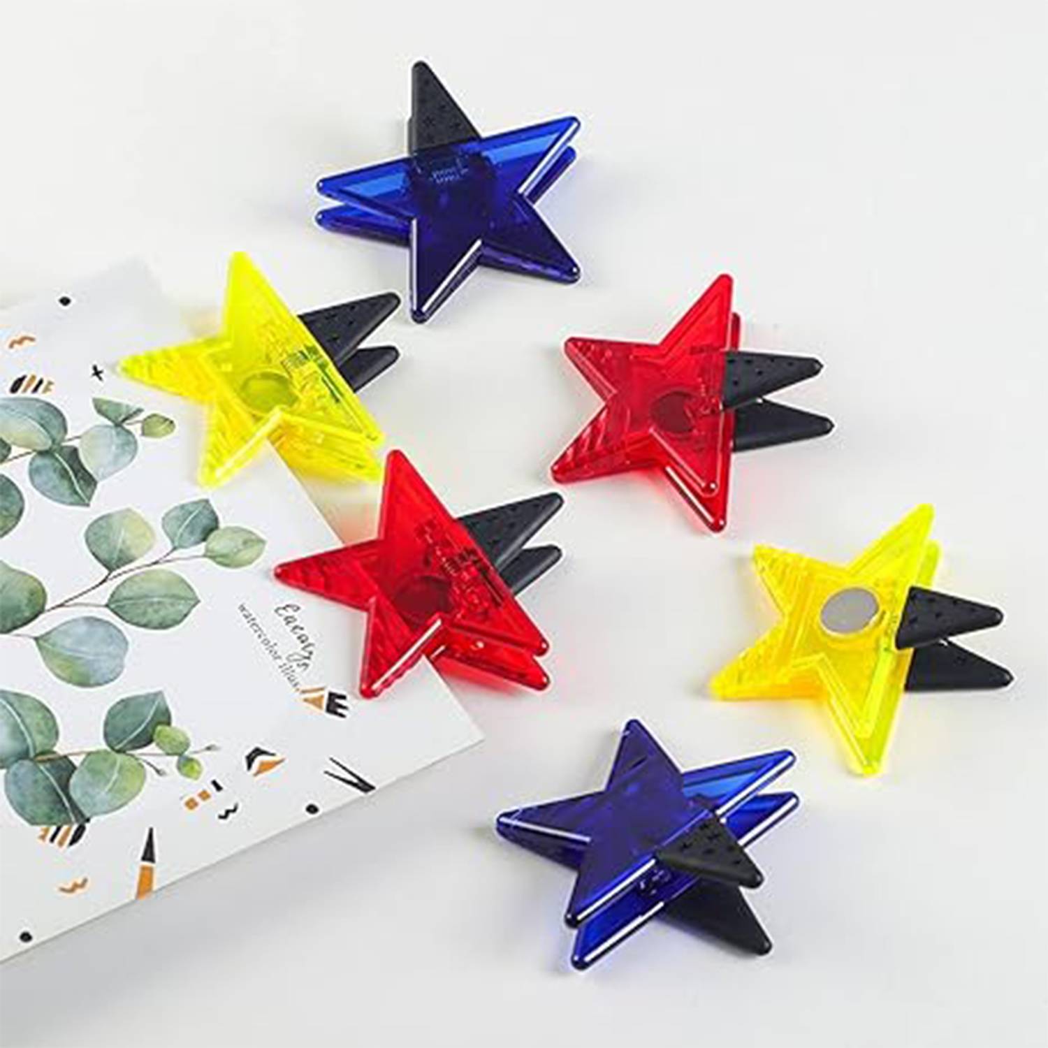 The star-shaped plastic magnetic clip is stylish and useful. Made of quality plastic with a strong magnet.