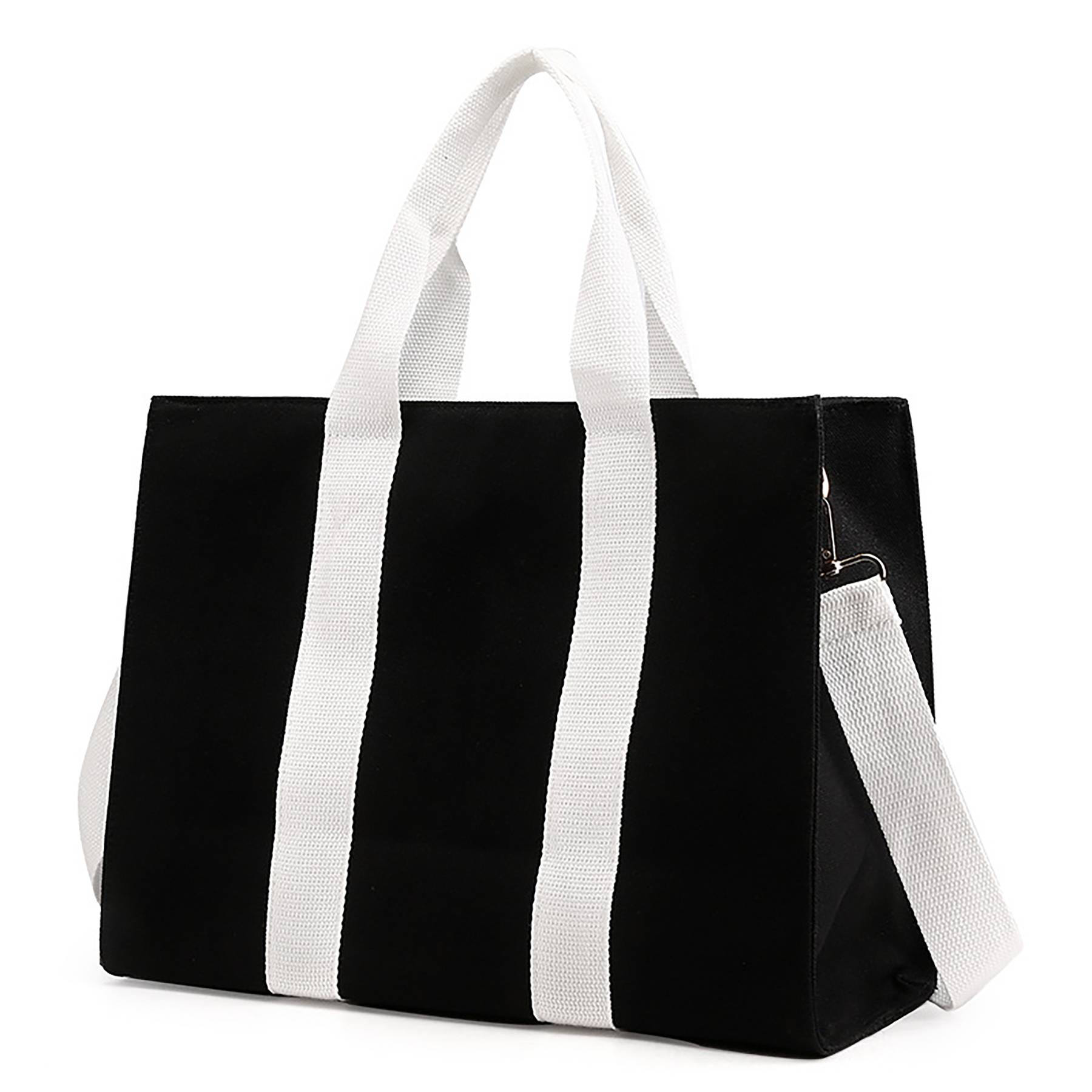 Stylish Canvas Tote Crossbody Bag Zipper Closure