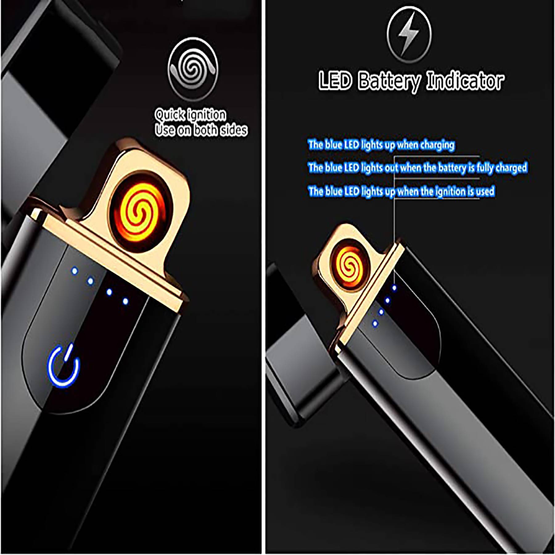 Made from metal. The new generation of dual sided lighter comes with touch induction to ignite. You don’t have to use your fingers to press the button , you just need to touch it to ignite, more easy , fast and convenient to ignite. Repetitive cycle charging, environmentally safe, easy to carry. Ignition is safe, environmentally friendly, lightweight, compact, smart chip, fast charge, wind and weatherproof. Your logo is available.Great for promotional gifts and giveaways.