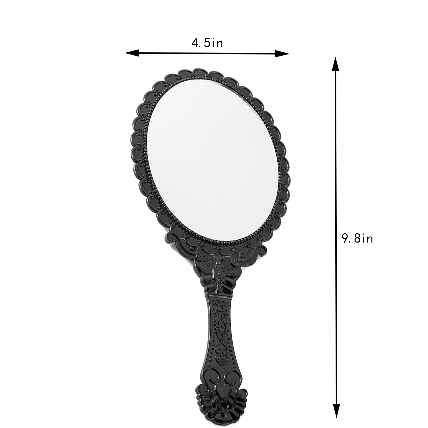 This retro-style handheld makeup mirror features an elegant oval design with delicate lace accents, crafted from durable, lightweight plastic for effortless portability. Its compact size fits perfectly in purses, travel bags, or vanity kits, ideal for quick touch-ups, salon sessions. The smooth, rounded edges ensure safe handling, while the ergonomic handle offers a secure grip. With a distortion-free reflection and timeless vintage charm, it is a thoughtful gift for women.