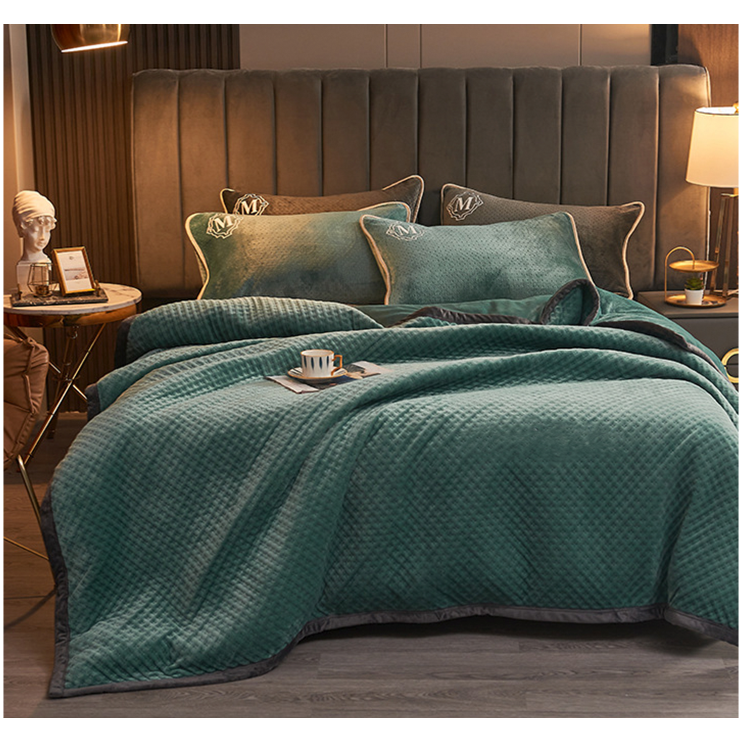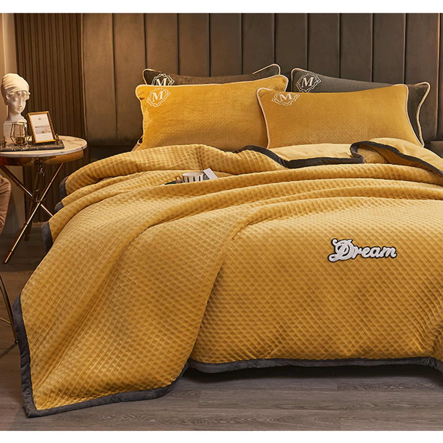 Waffle Textured soft fleece on the front and milk velvet on the back. Double sided thickening for warmth. The multifunctional blanket can be used as both a blanket and a quilt cover. The reactive dyeing process makes the coloring effect better and Skin affinity. Crystal velvet edging has a longer service life. The design of cloth embroidered label is more beautiful and fashionable. Widely used for winter in home. 78.6″x70.7″
