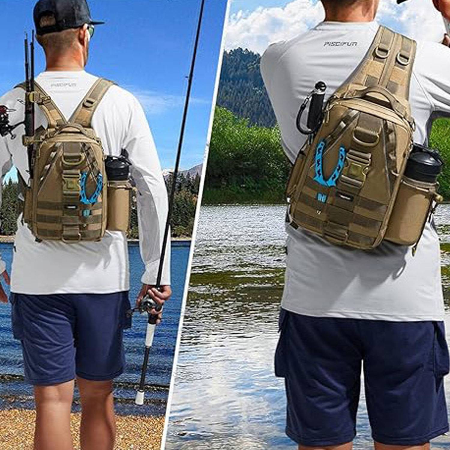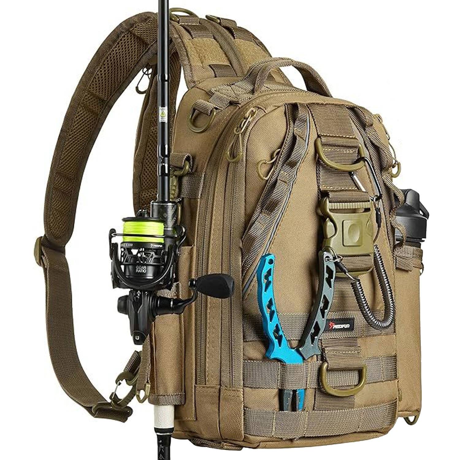 Durable waterproof canvas bag with large capacity, multiple compartments for organized gear, ideal for outdoor fishing trips.